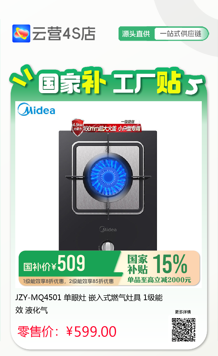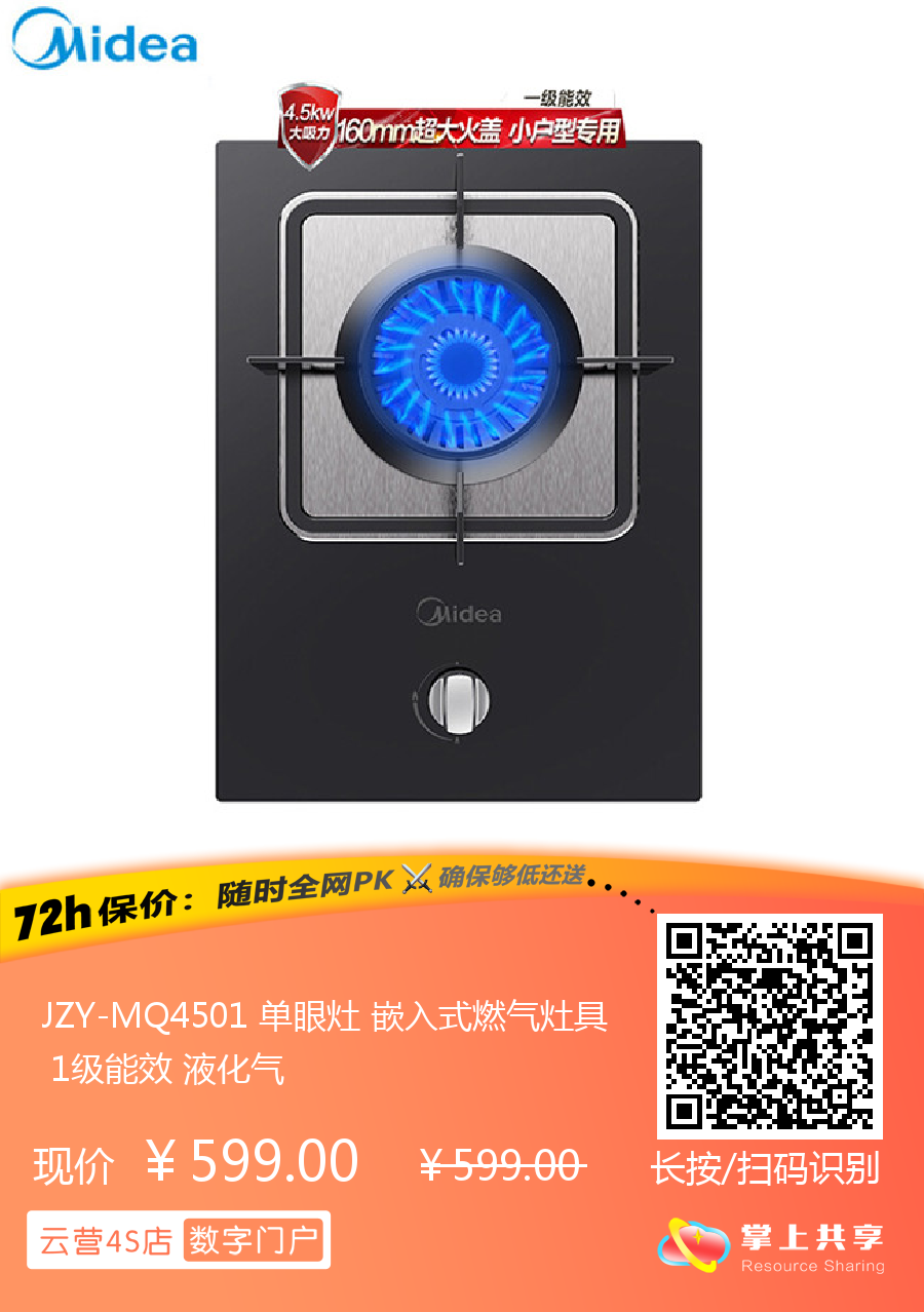 JZY-MQ4501 单眼灶 嵌入式燃气灶具 1级能效 液化气