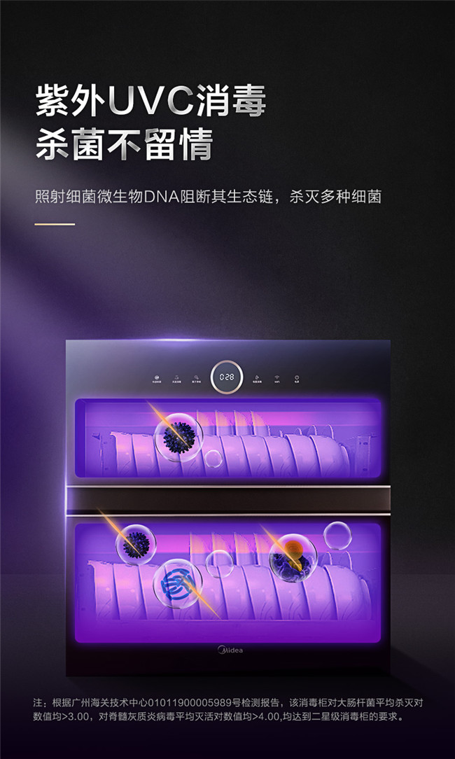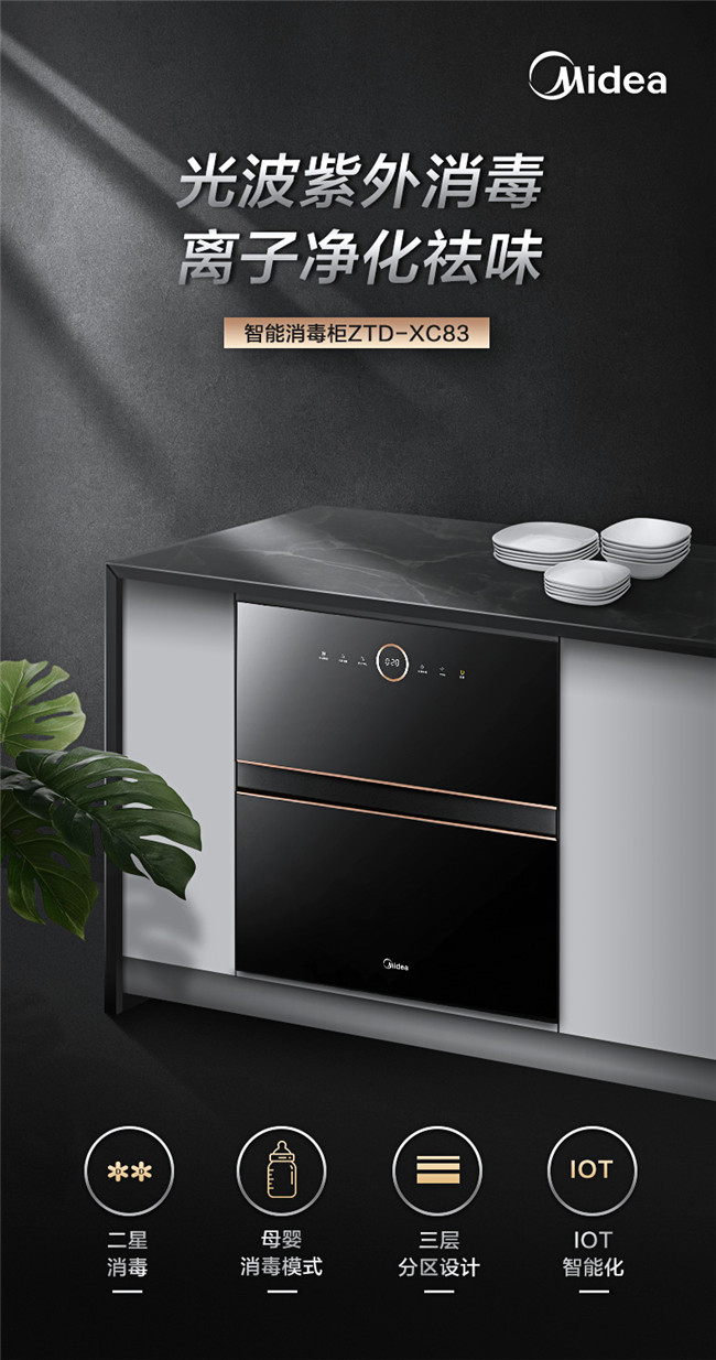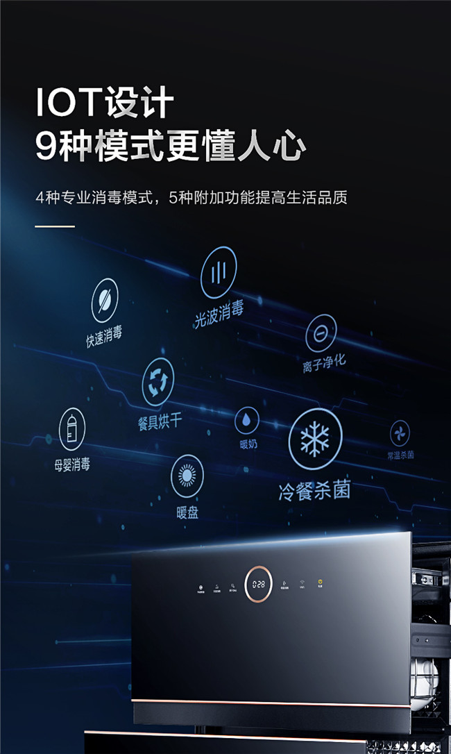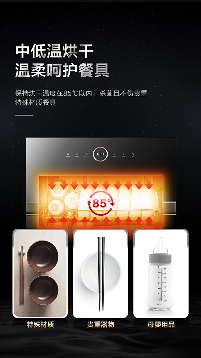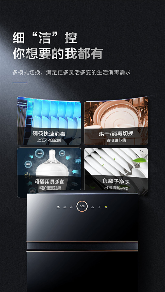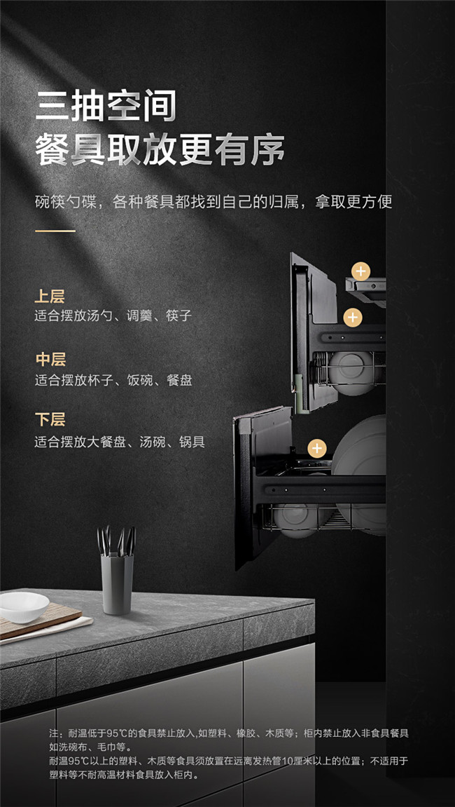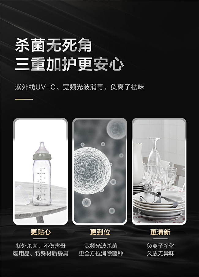 光波二星中温消毒、母婴消毒模式、三层碗篮设计、长效抑菌