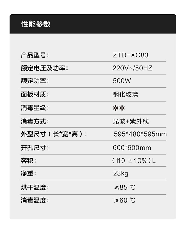 ZTD-XC83 110升多重物理消毒柜 两门三抽设计 全维场景智控 二星级消毒