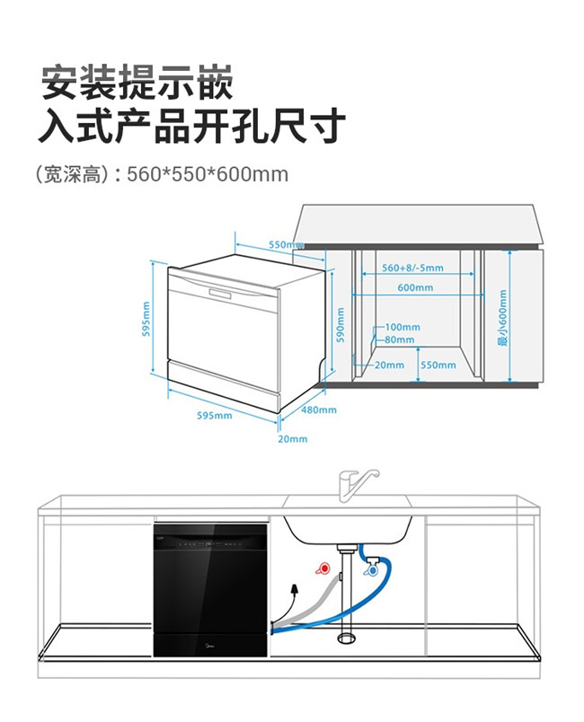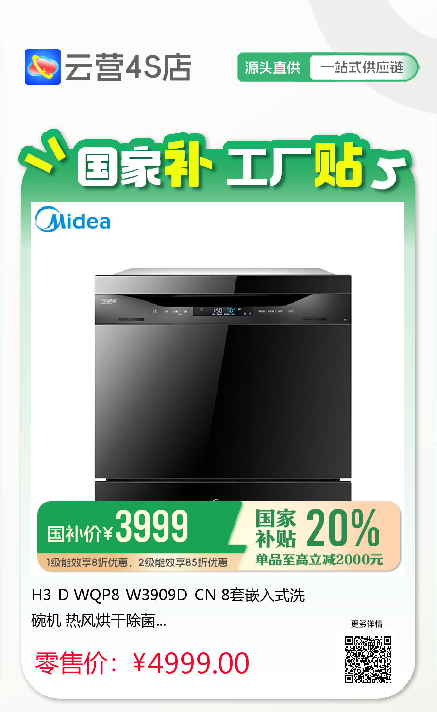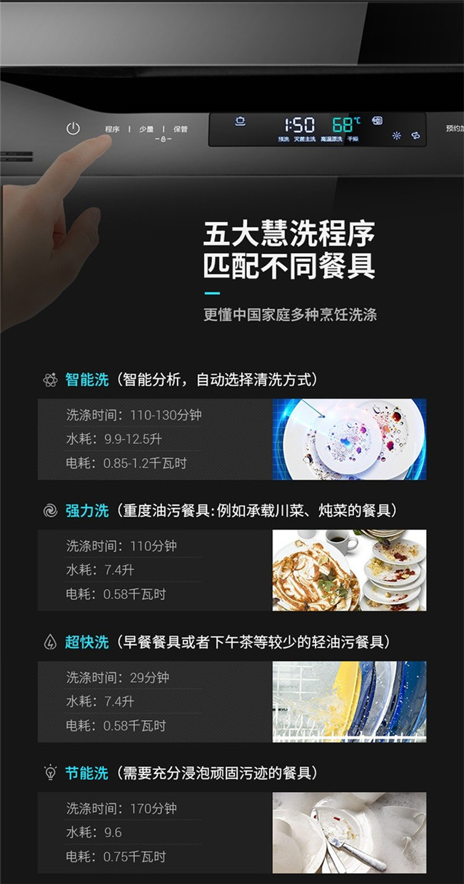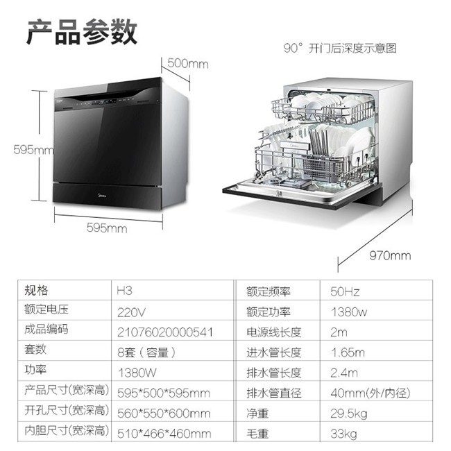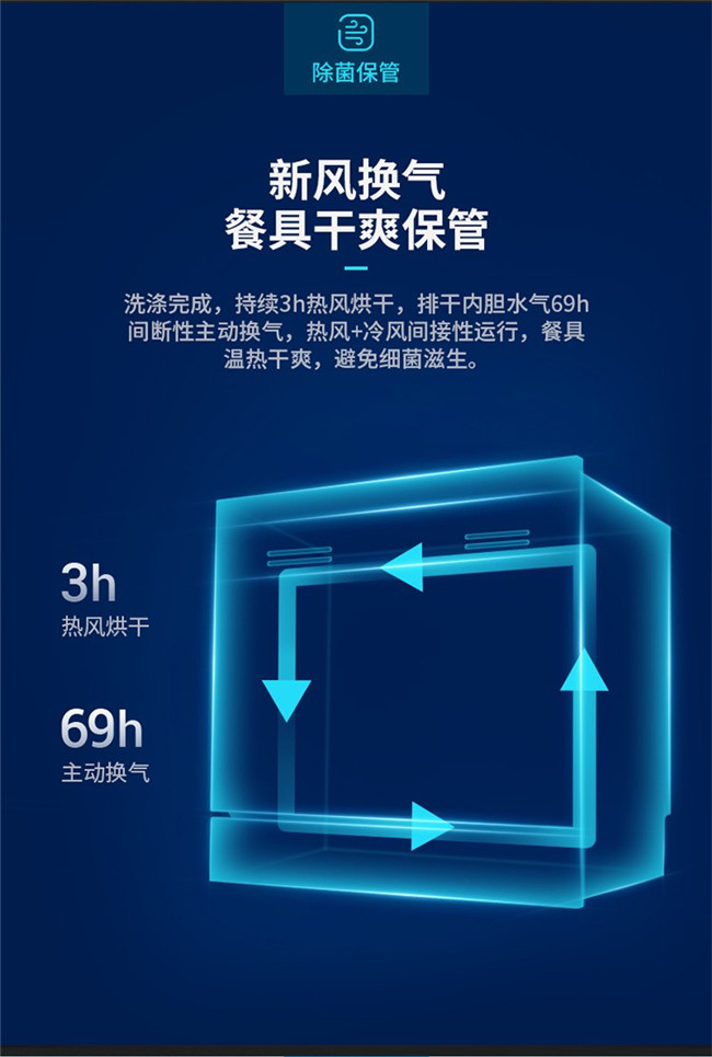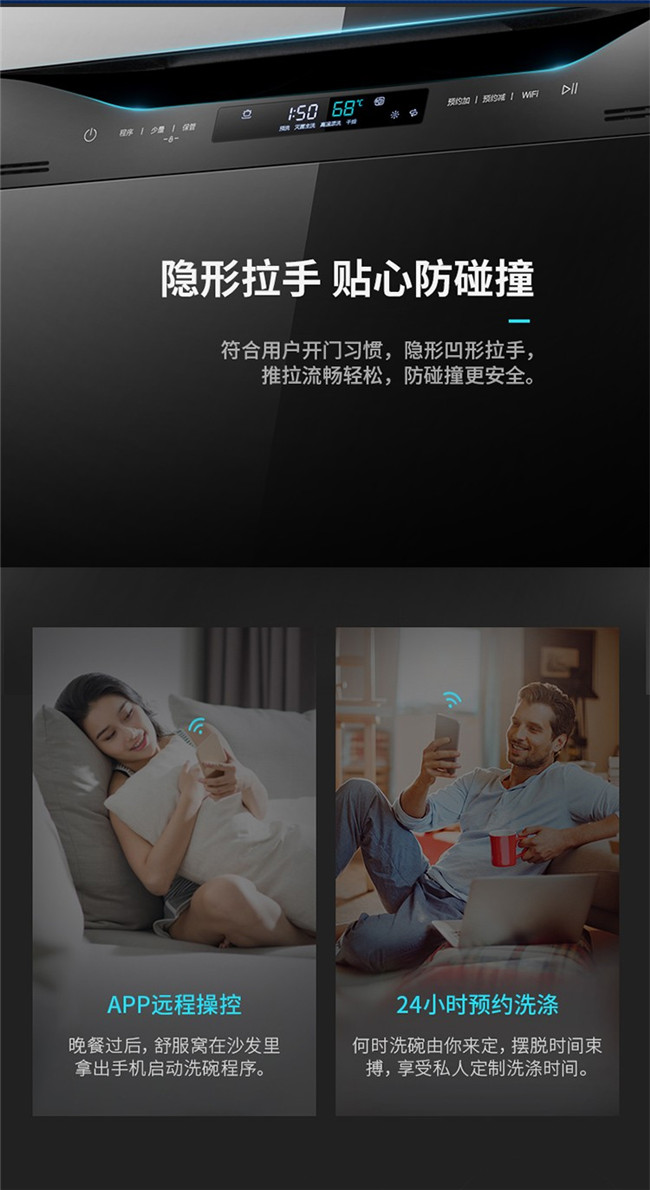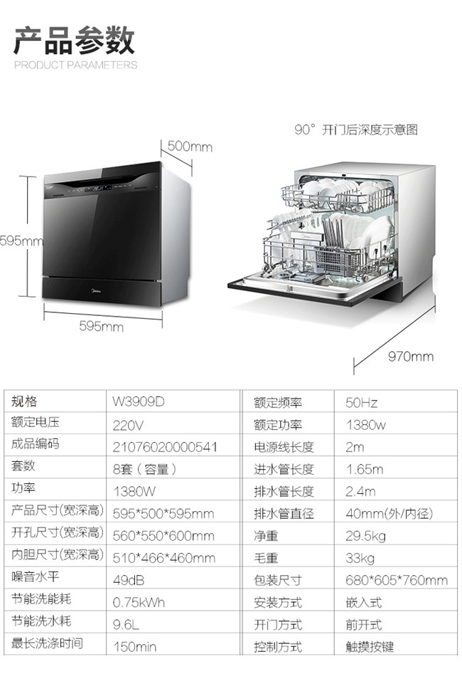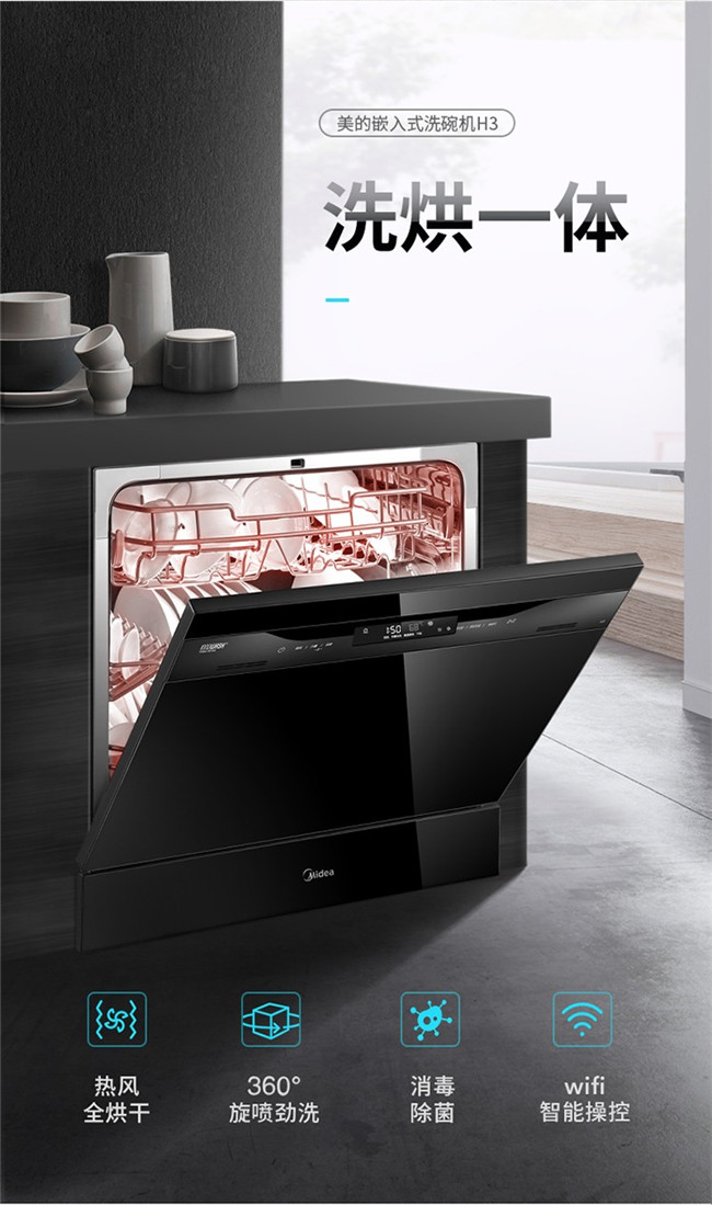 H3-D WQP8-W3909D-CN 8套嵌入式洗碗机 热风烘干除菌