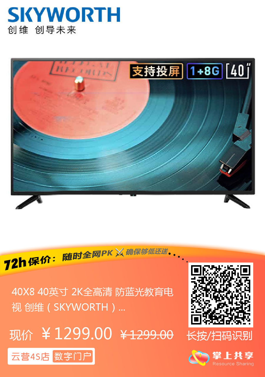 40X8 40英寸 2K全高清 防蓝光教育电视 创维(SKYWORTH)