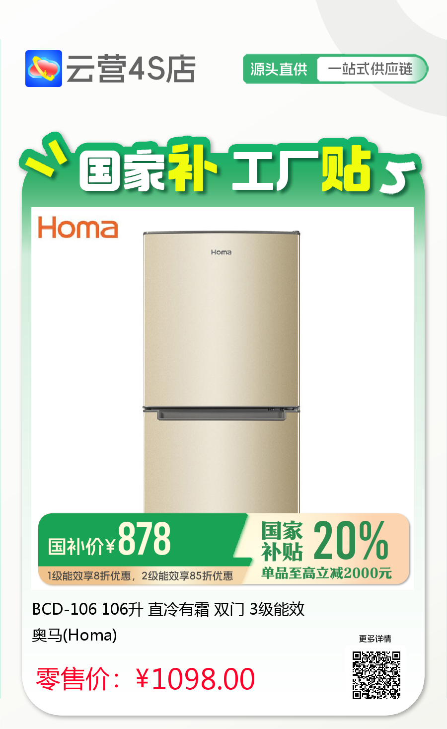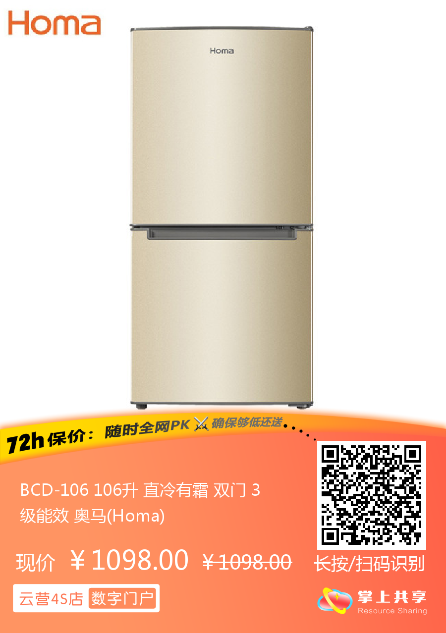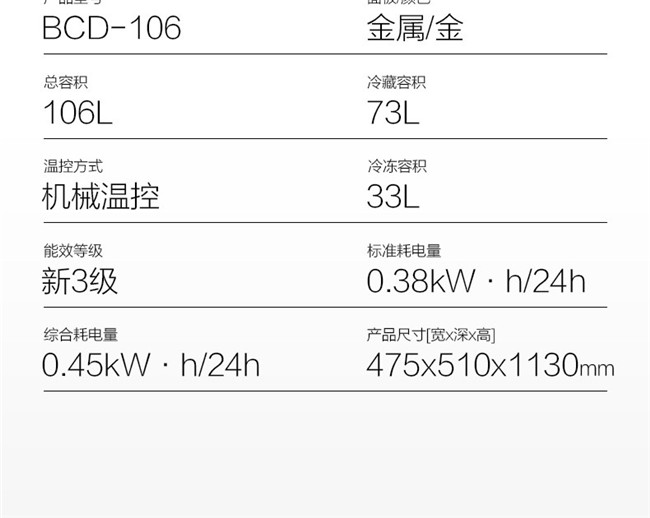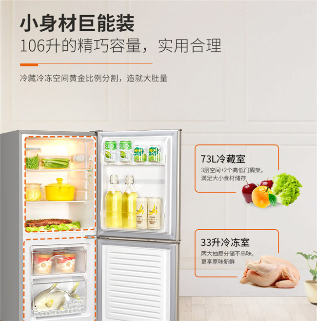 BCD-106 106升 直冷有霜 双门 3级能效 奥马(Homa)