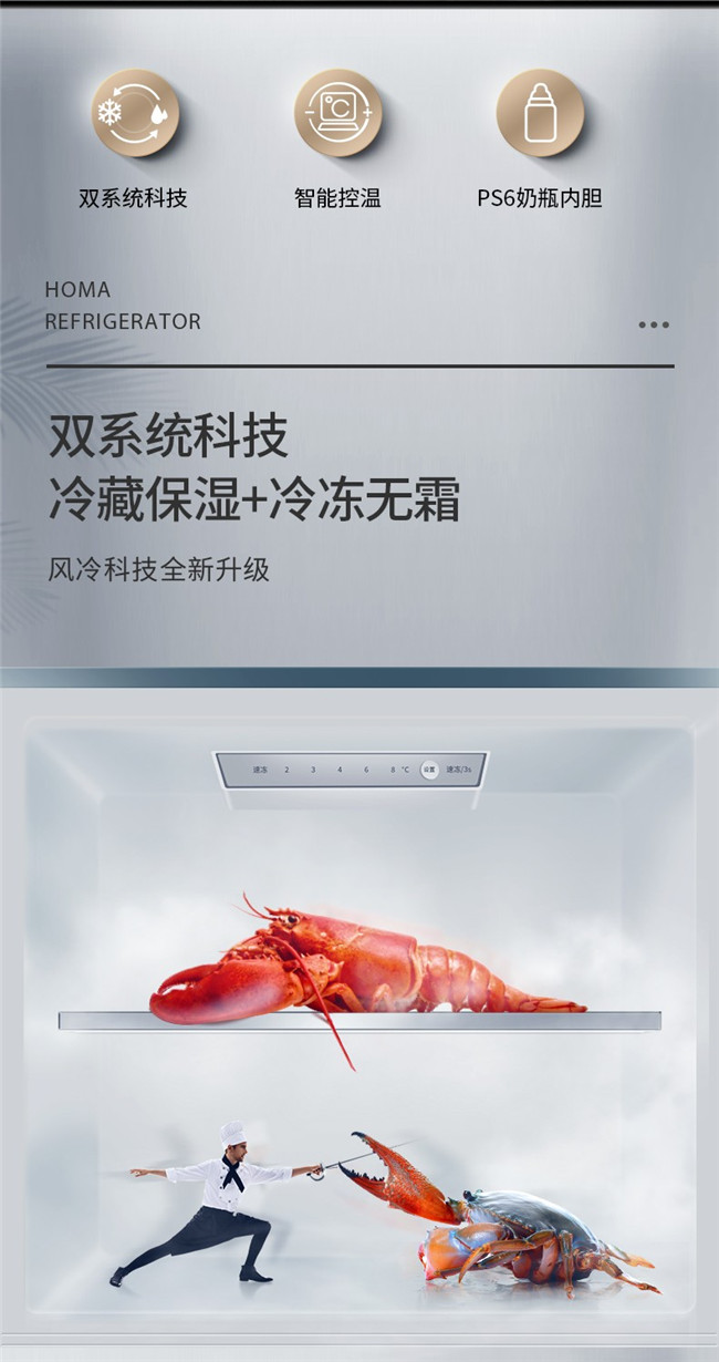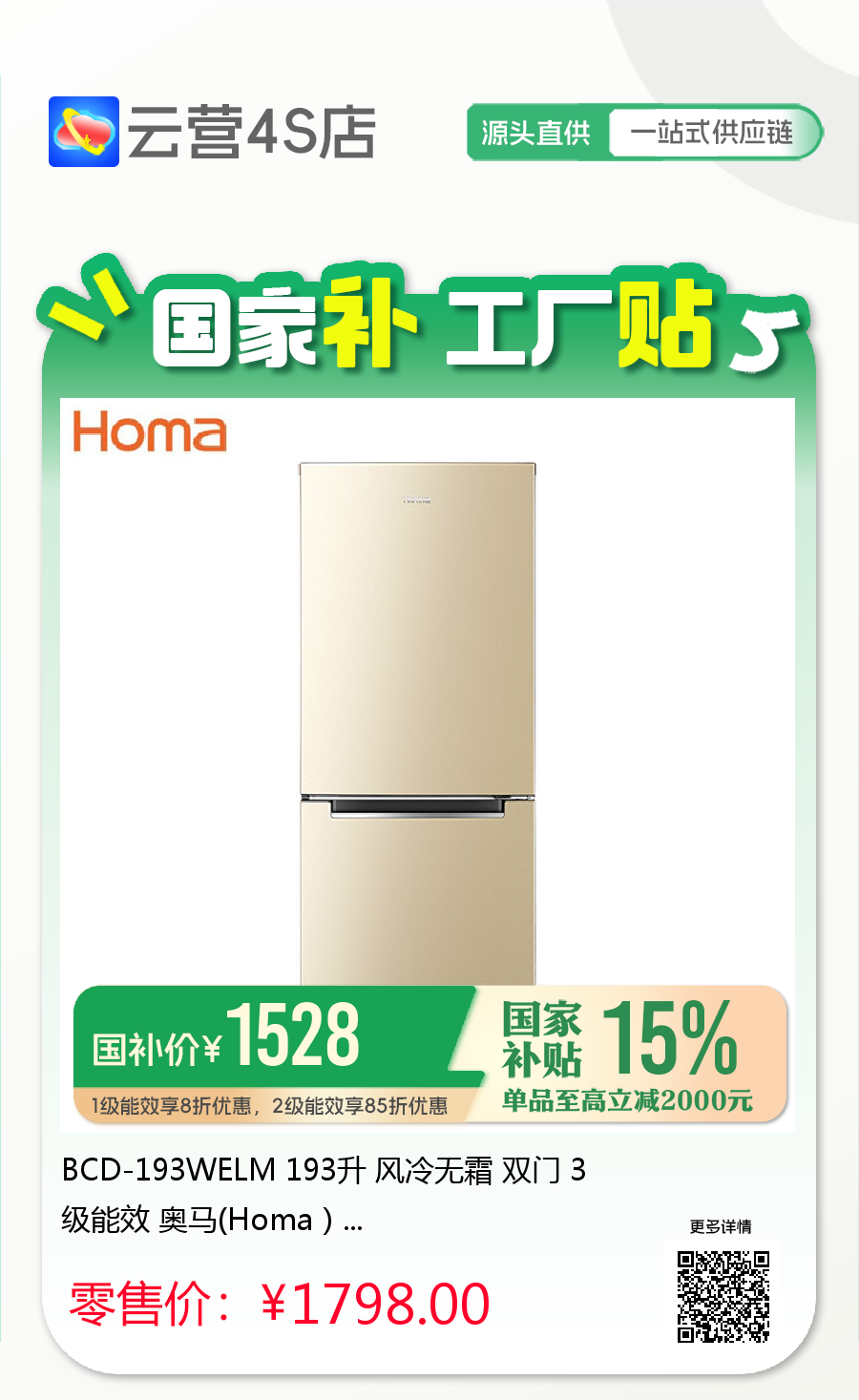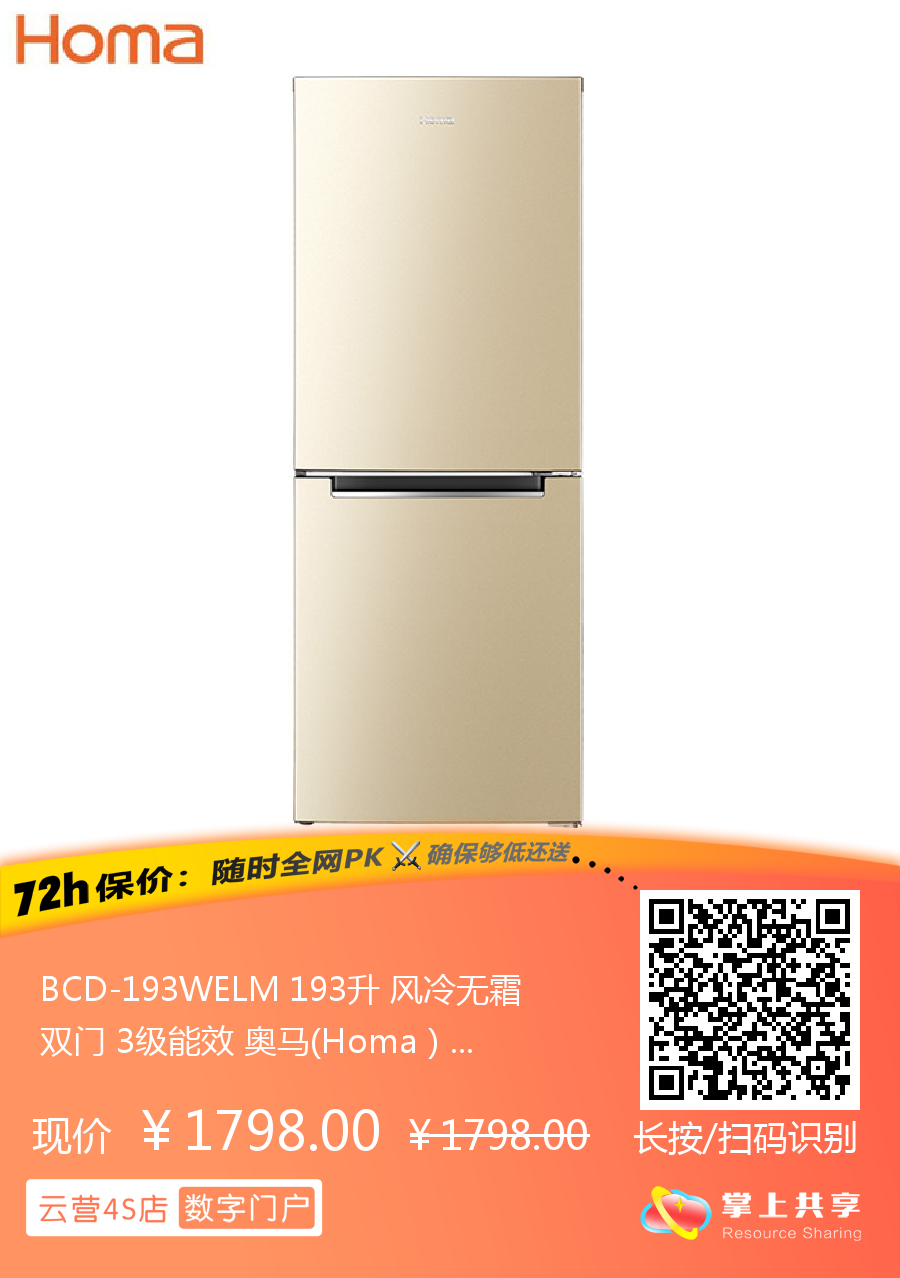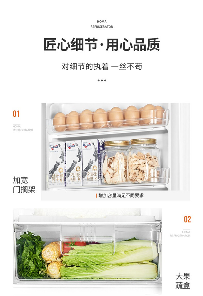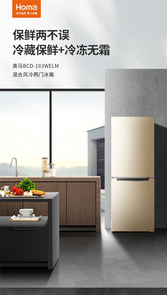 BCD-193WELM 193升 风冷无霜 双门 3级能效 奥马(Homa)
