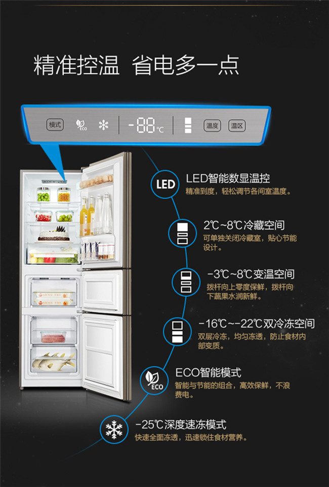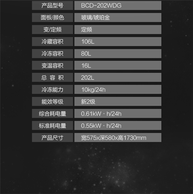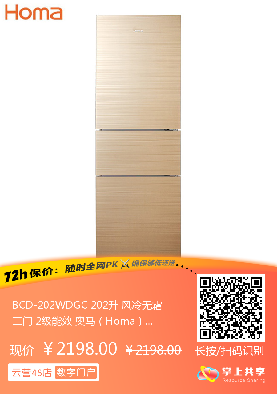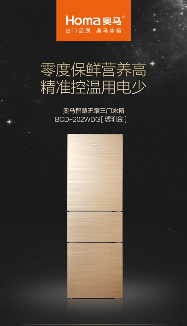 BCD-202WDGC 202升 风冷无霜 三门 2级能效 奥马(Homa)