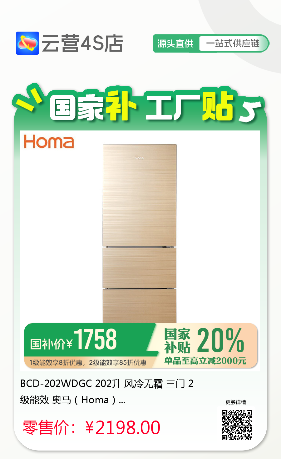 奥马冰箱~「云营4S店❃无界直营」