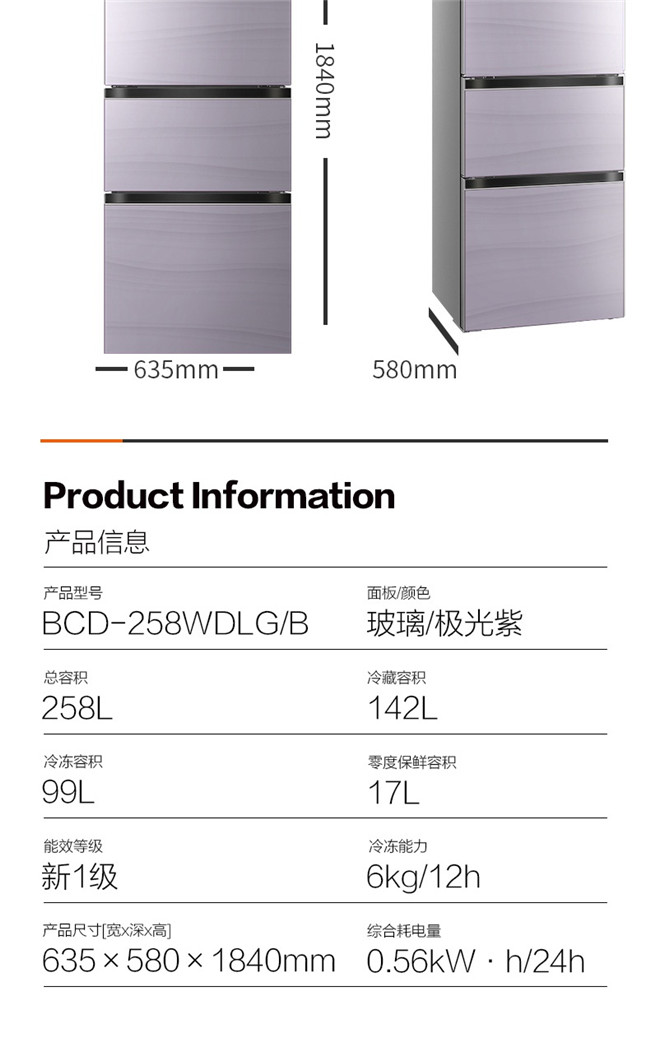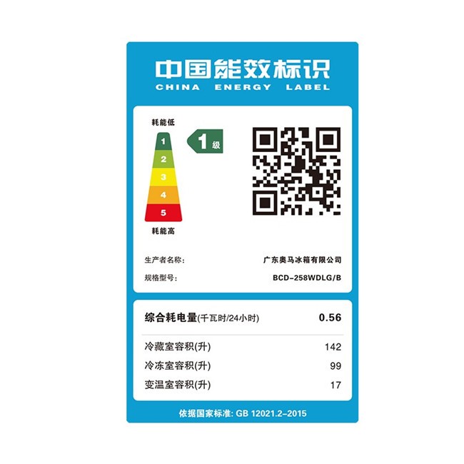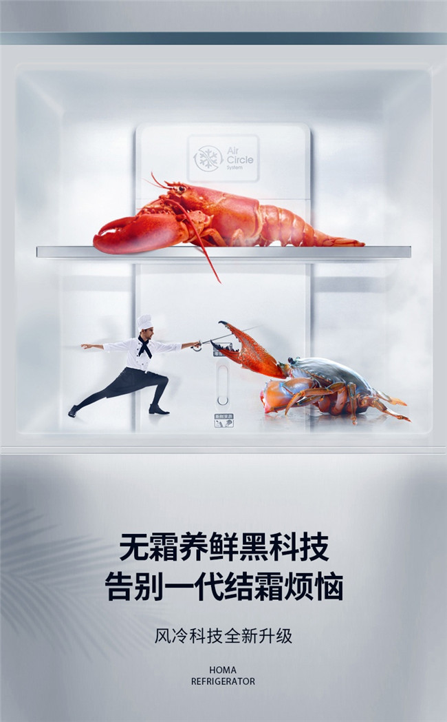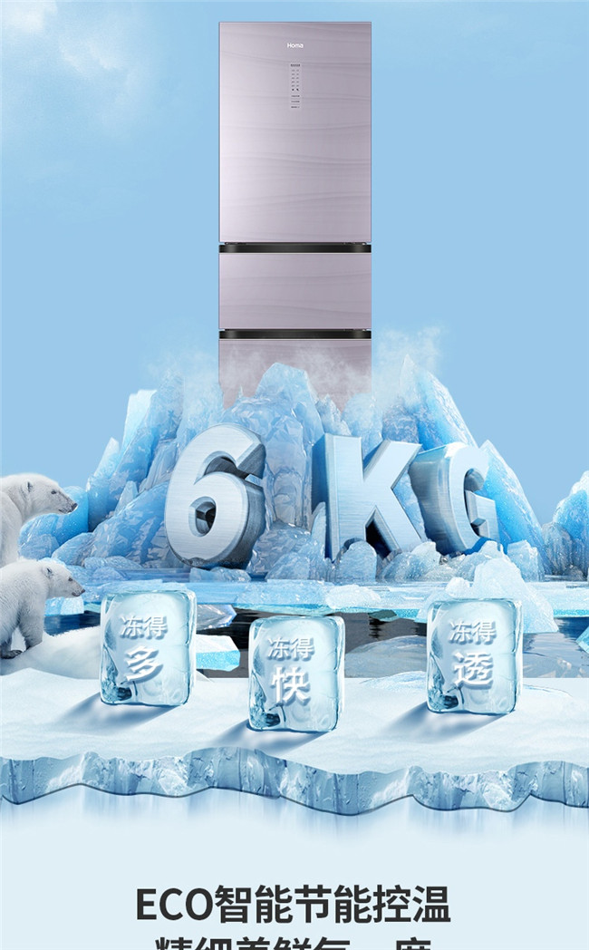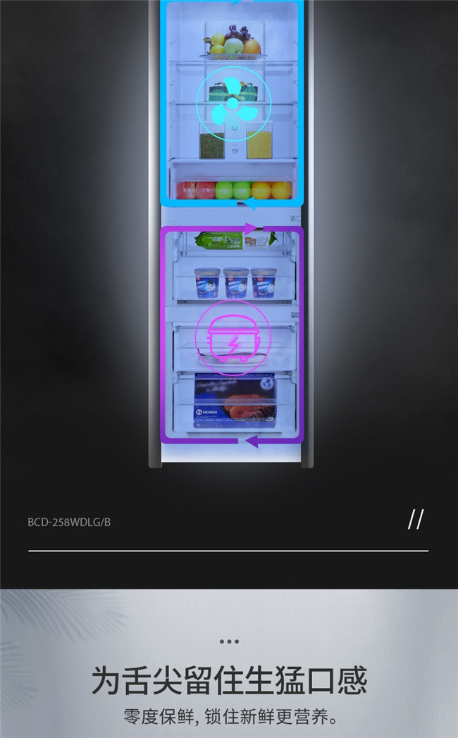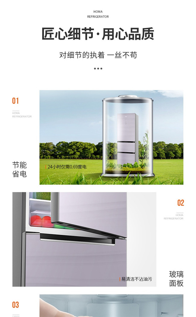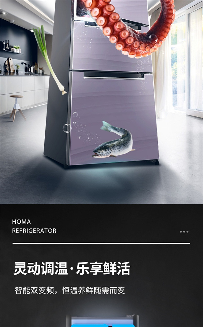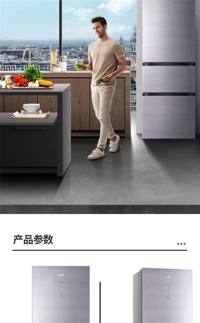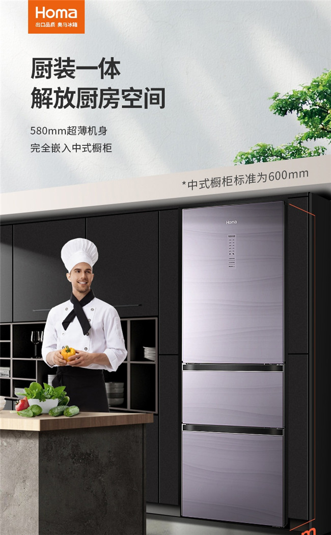BCD-258WDLG/B 258升 风冷无霜 三门 1级能效 奥马(Homa)