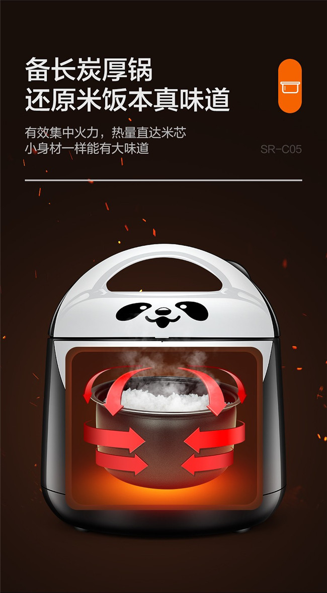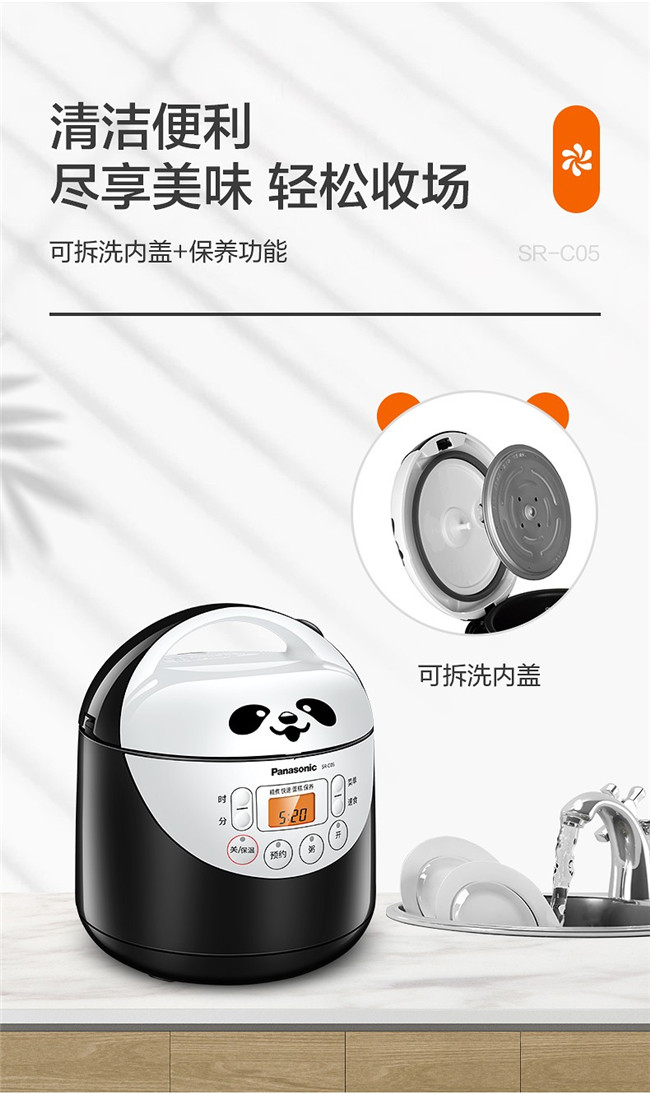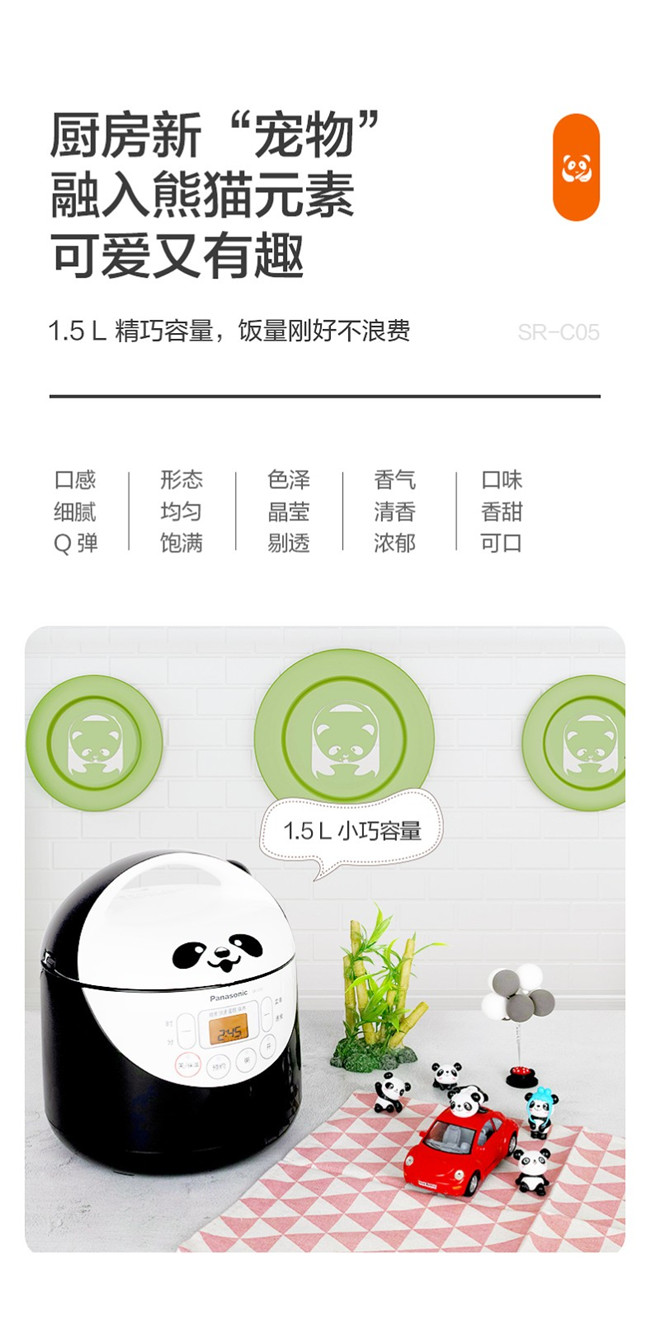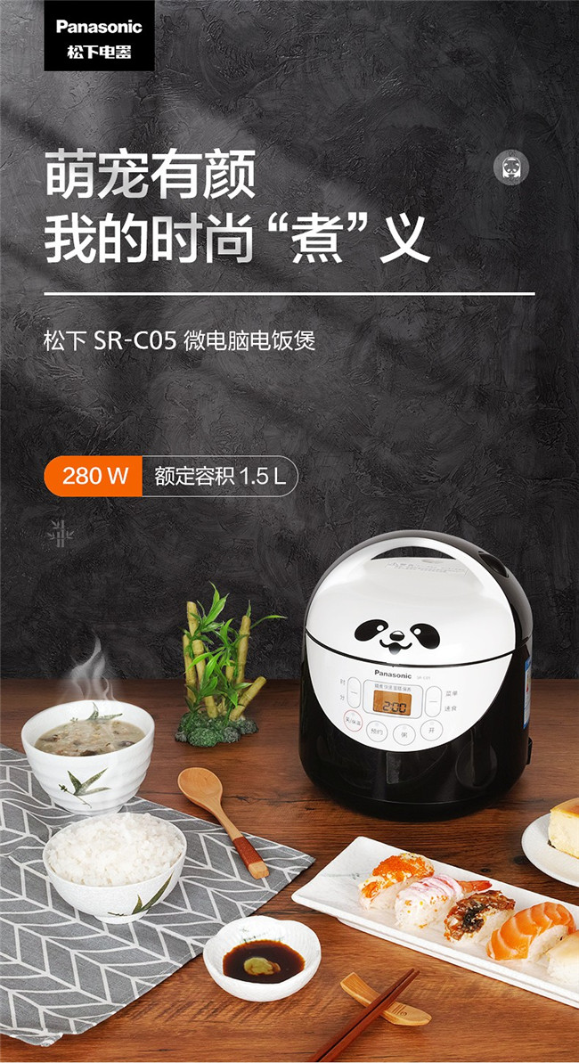 SR-C05 1.5L 备长炭内胆 迷你微电脑 熊猫电饭锅 黑色 松下(Panasonic)