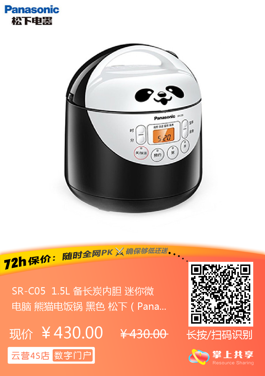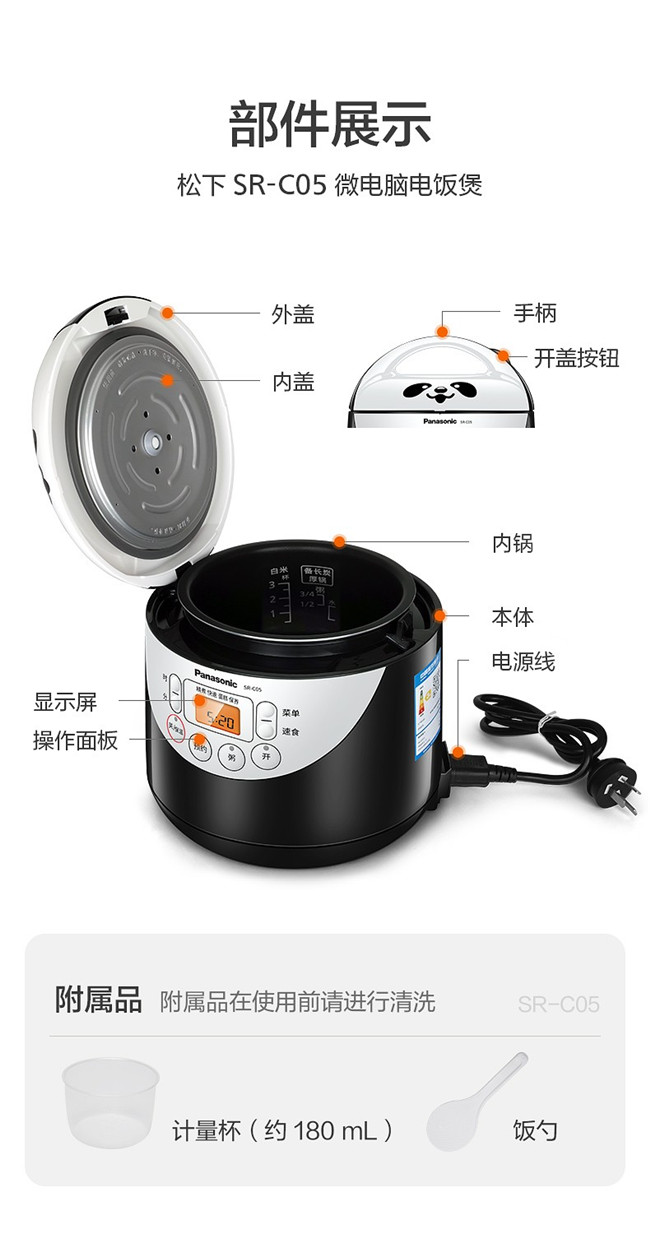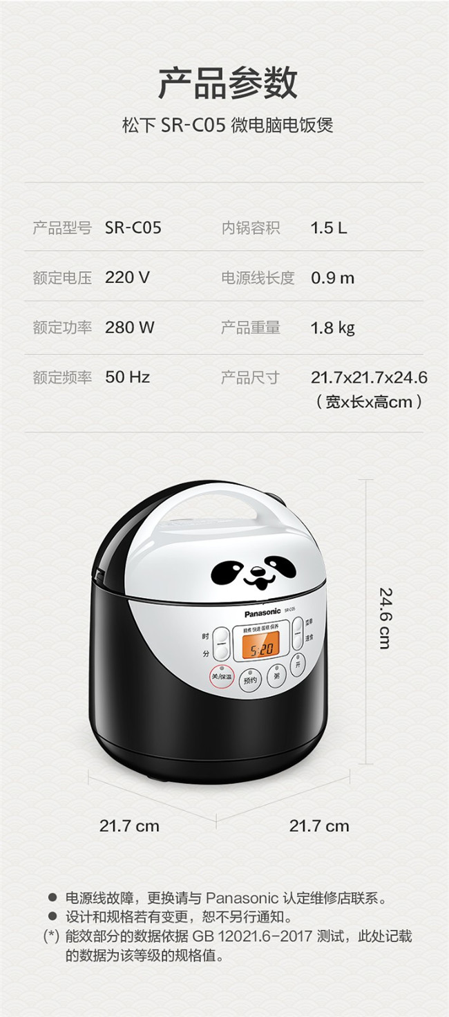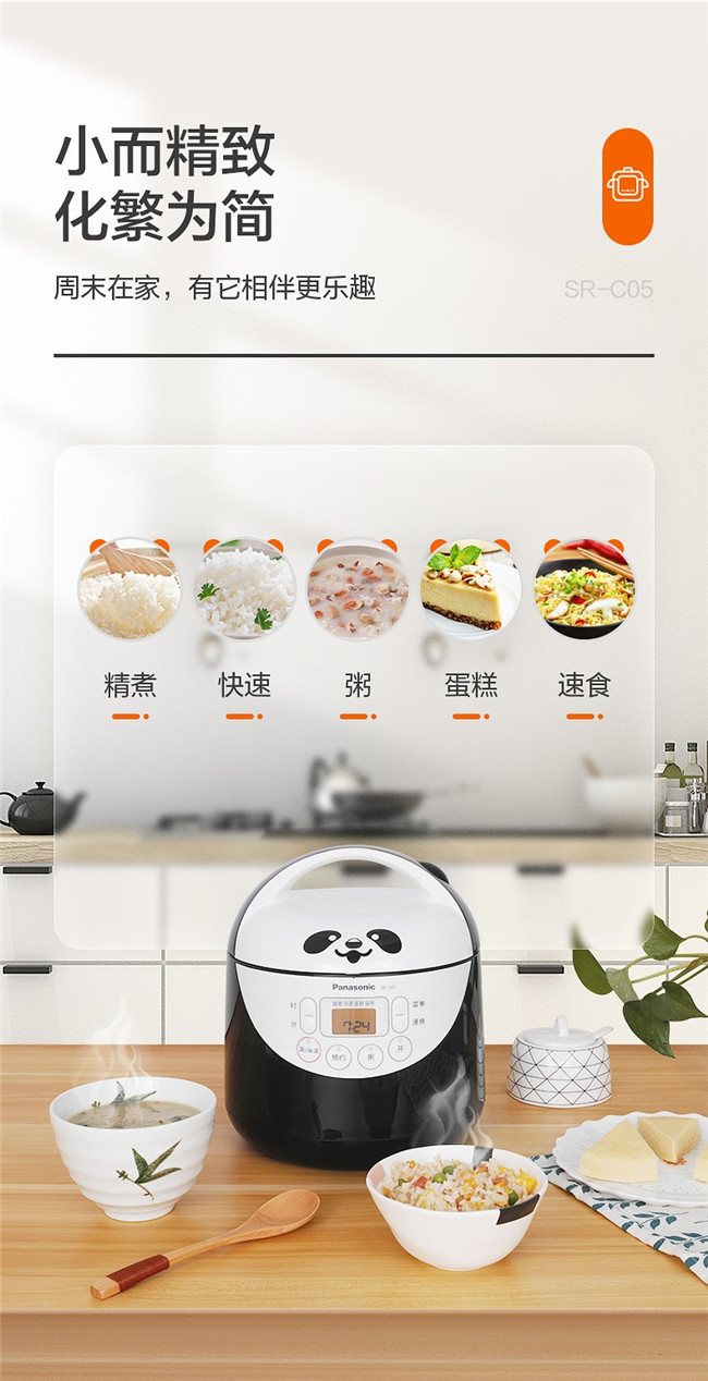 SR-C05 1.5L 备长炭内胆 迷你微电脑 熊猫电饭锅 黑色 松下(Panasonic)