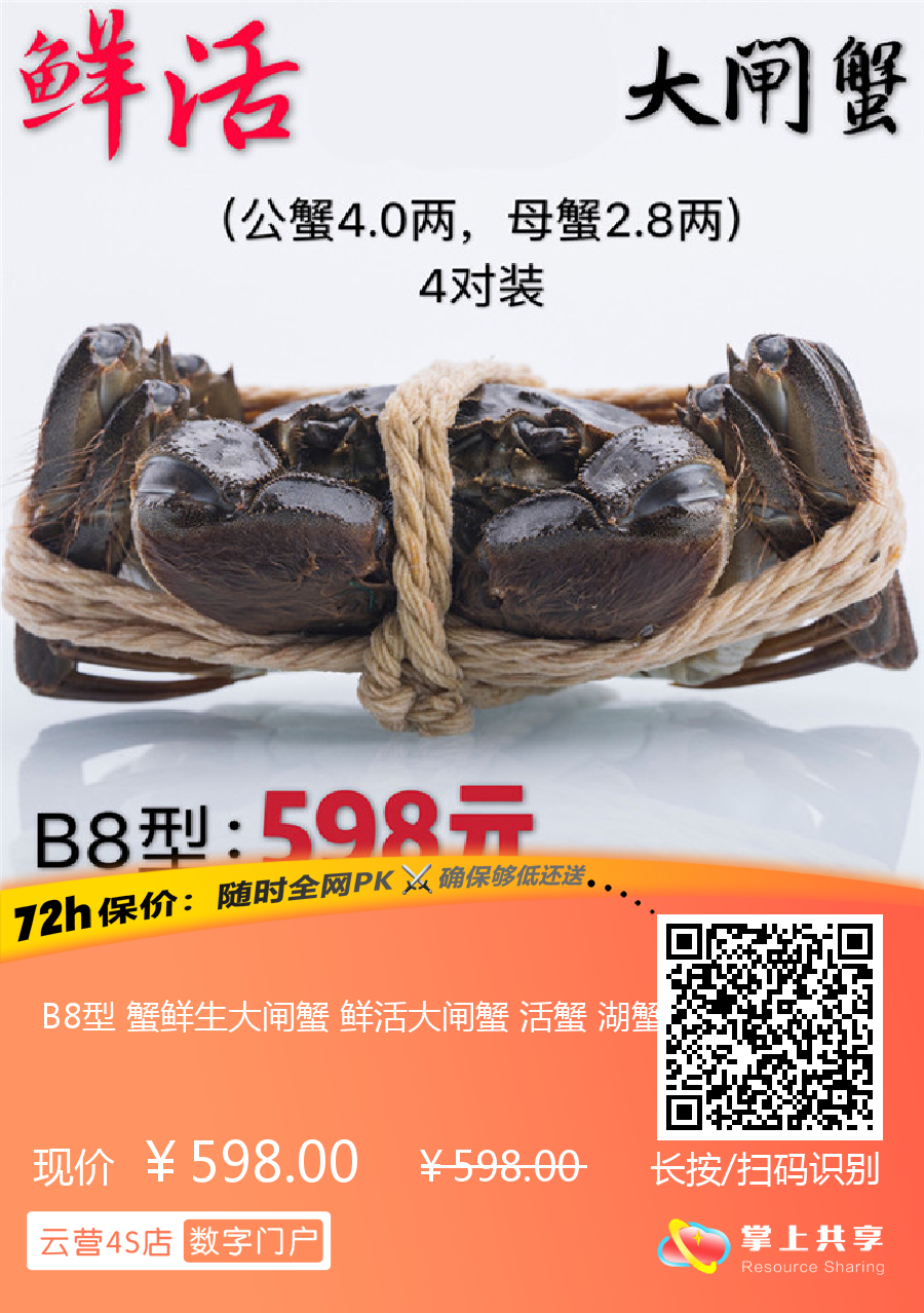 B8型 蟹鲜生大闸蟹 鲜活大闸蟹 活蟹 湖蟹