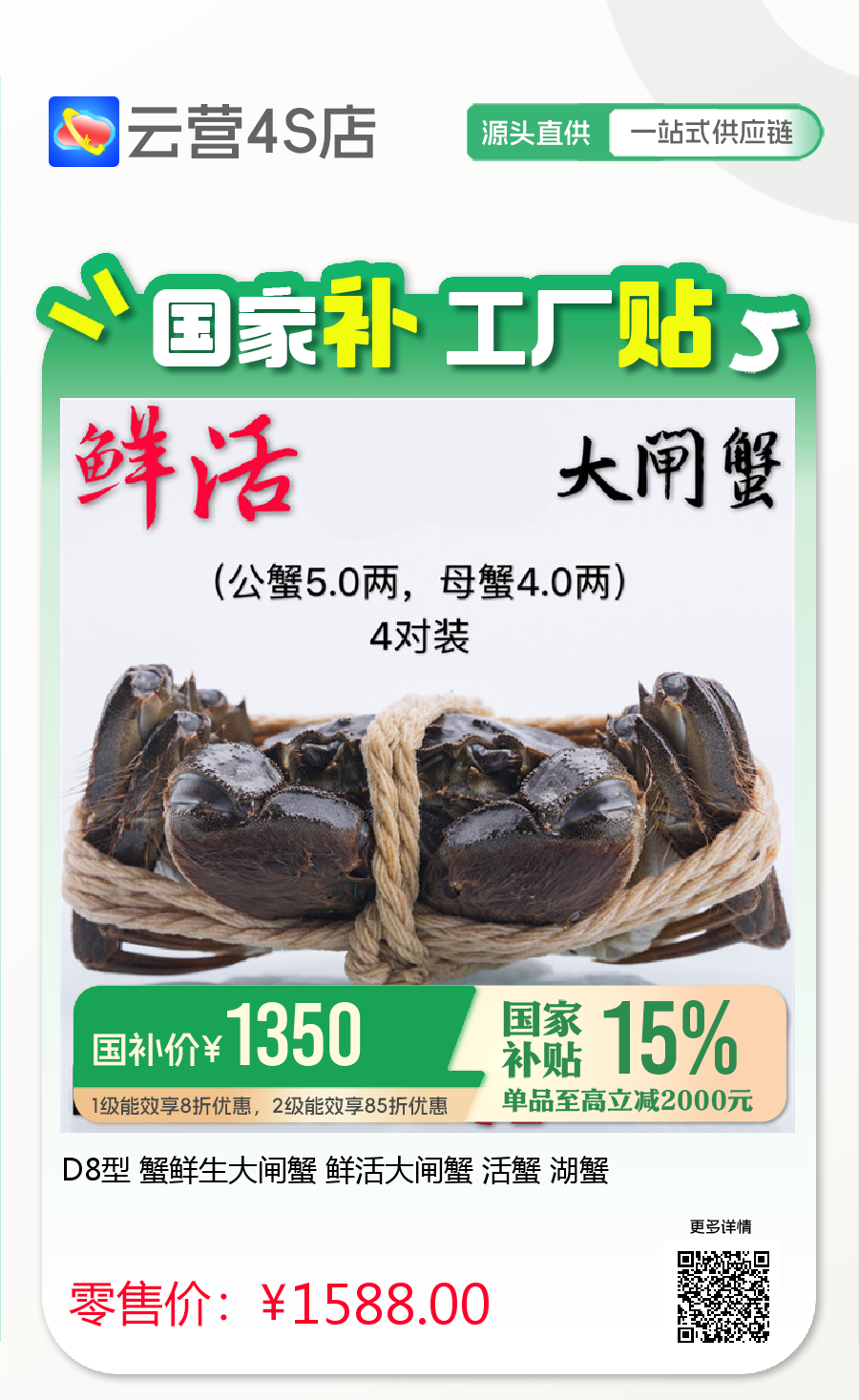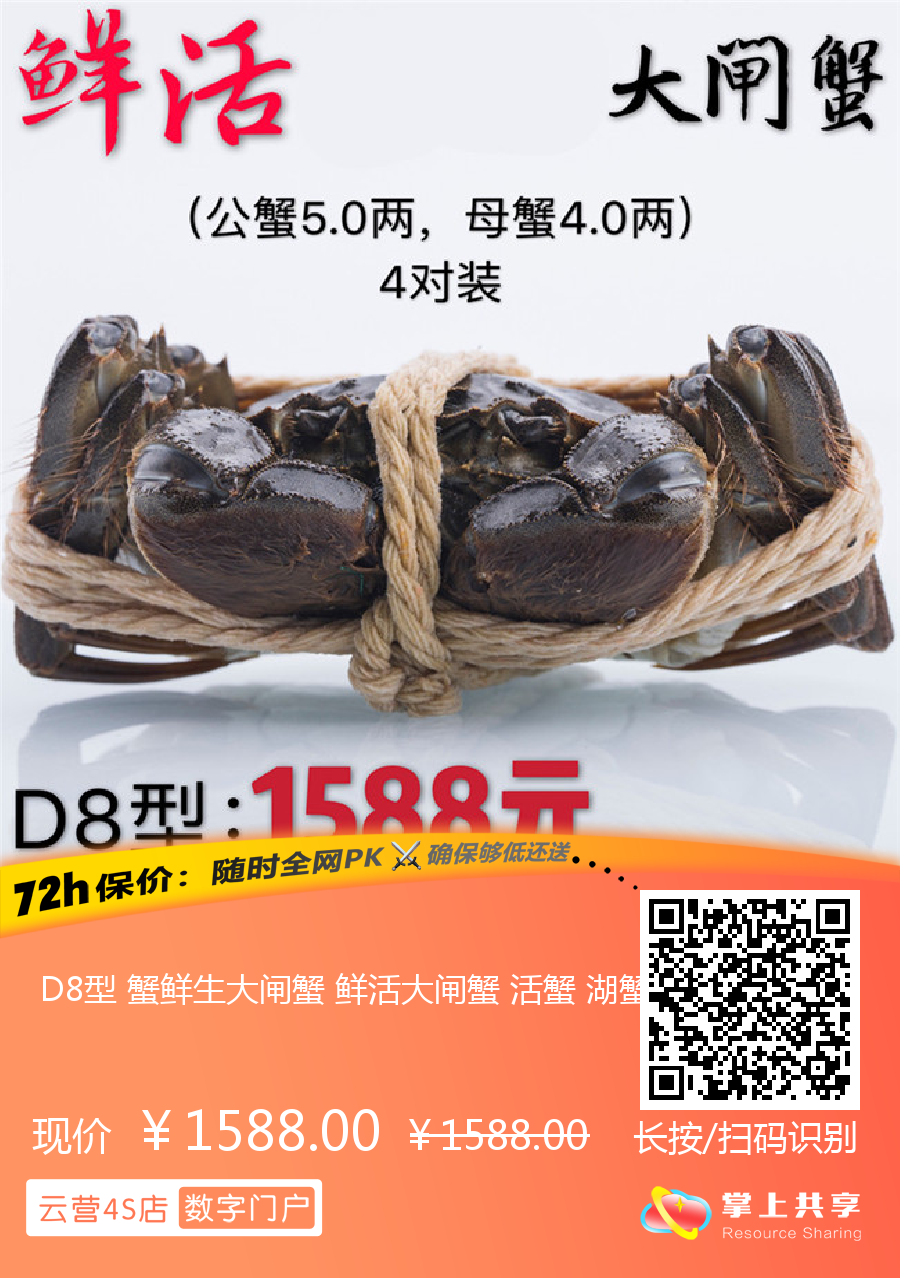 D8型 蟹鲜生大闸蟹 鲜活大闸蟹 活蟹 湖蟹