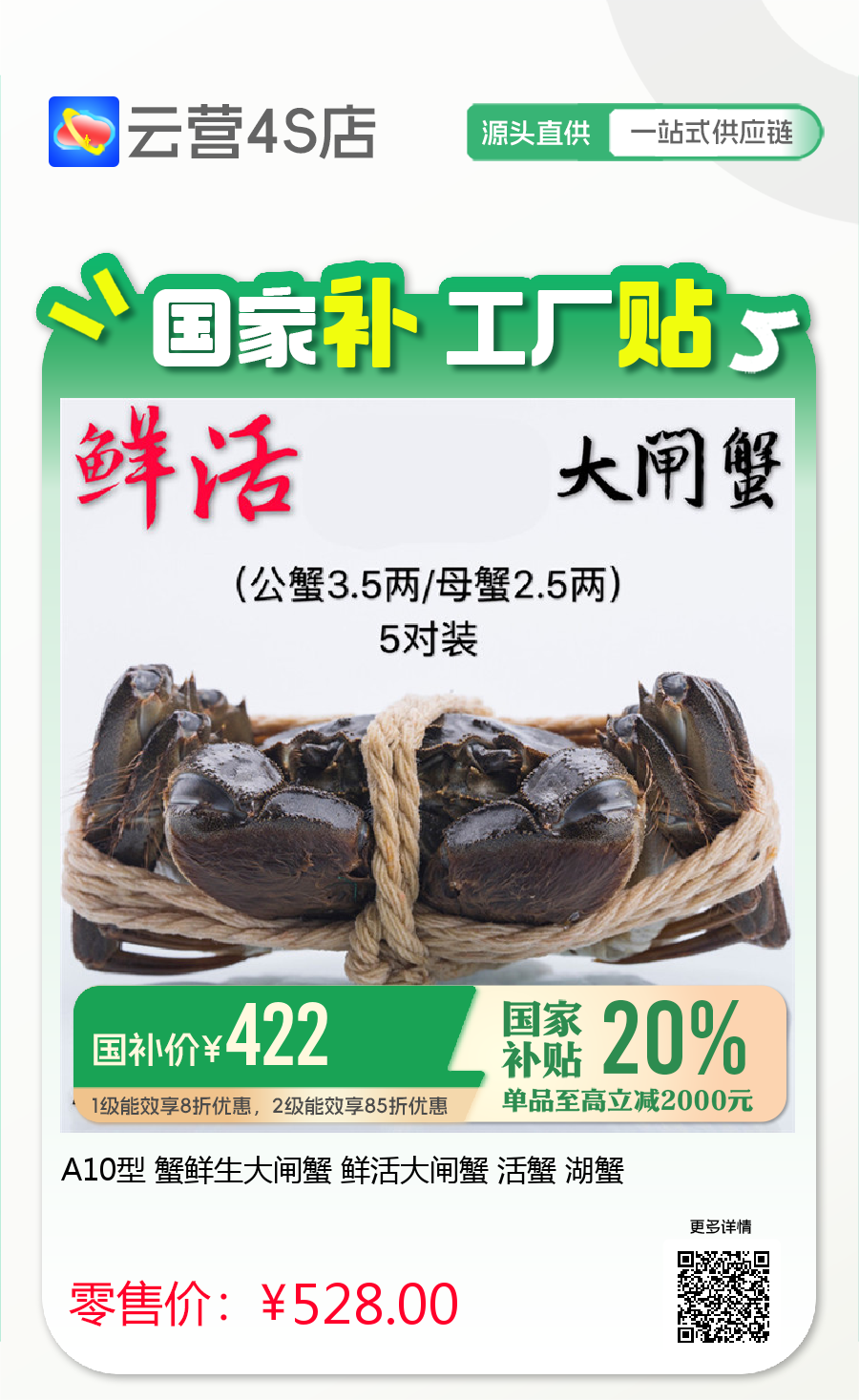 A10型 蟹鲜生大闸蟹 鲜活大闸蟹 活蟹 湖蟹