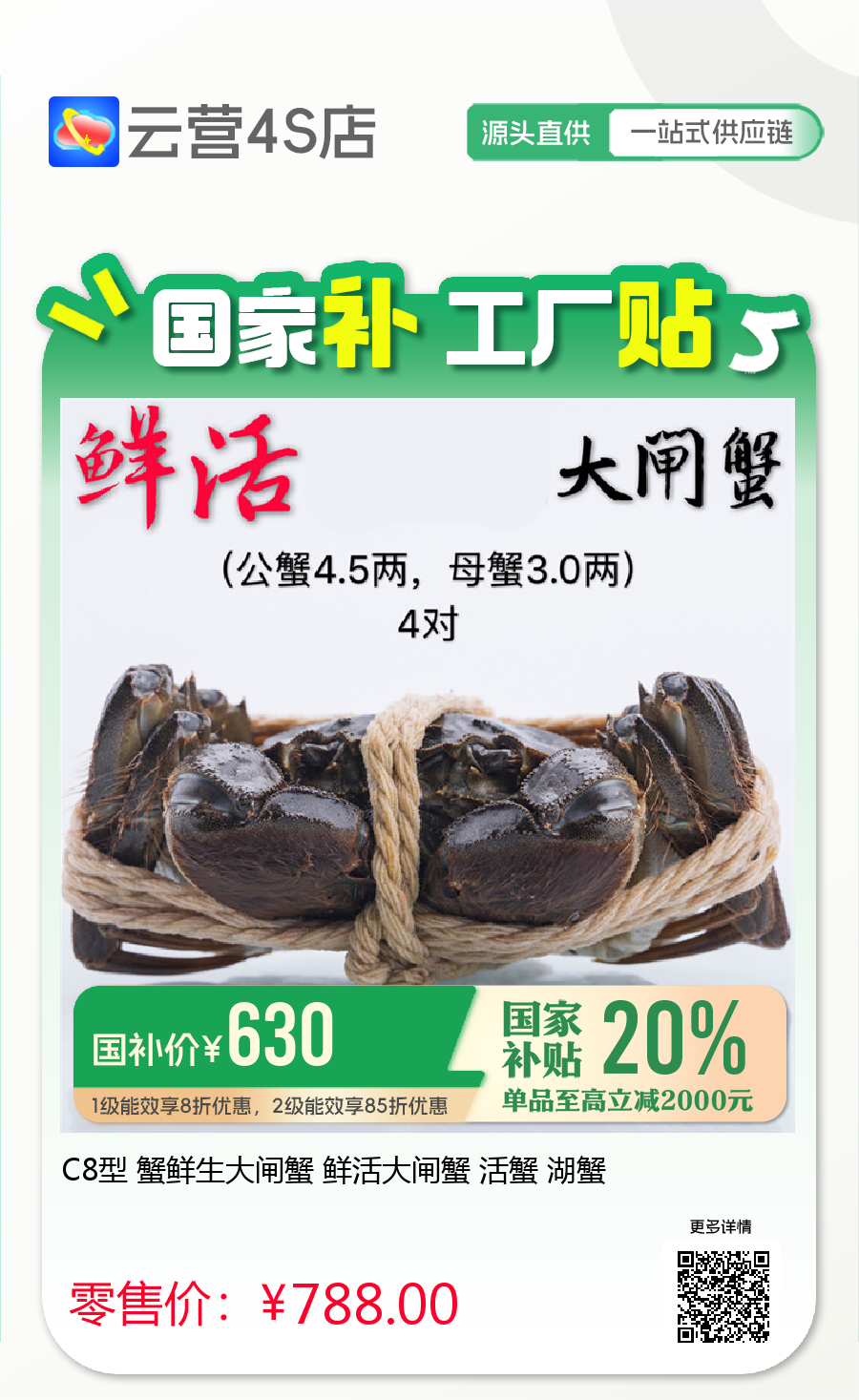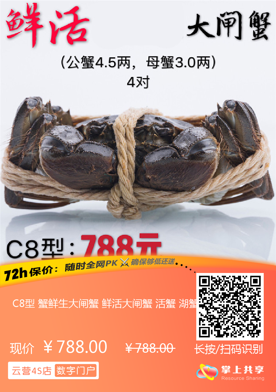 C8型 蟹鲜生大闸蟹 鲜活大闸蟹 活蟹 湖蟹