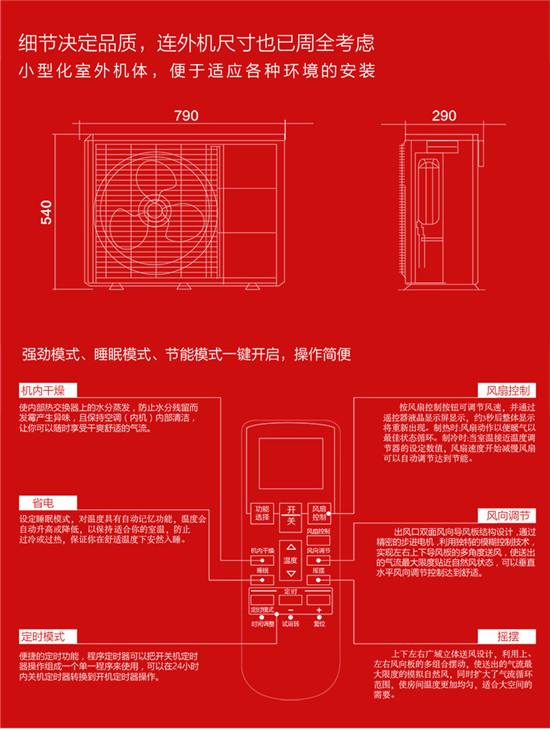 室内机×1; 室外机X1; 说明书×1; 遥控器 × 1; 保修卡 × 1; 联接管(室外机包装内)×1; 等
