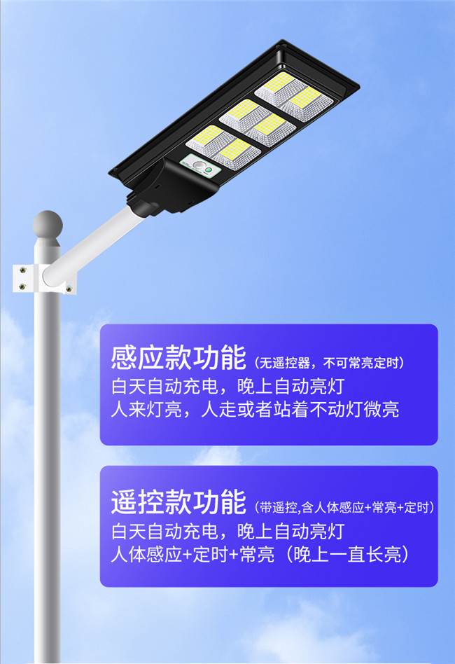 太阳能灯 2头路灯 户外庭院灯 防水家用 新农村照明led路灯 人体感应灯超亮灯