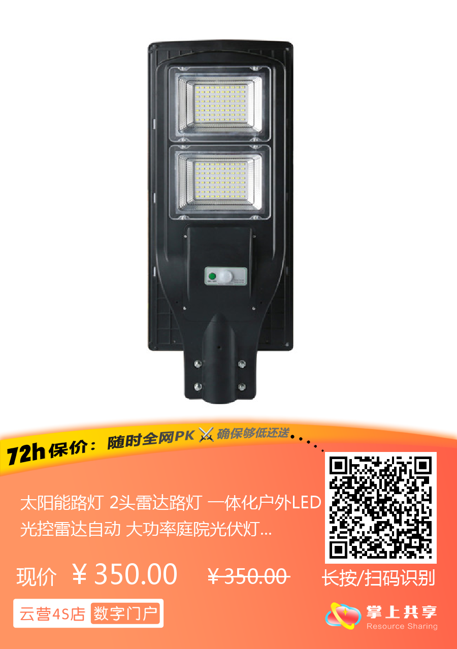 太阳能路灯 2头雷达路灯 一体化户外LED 光控雷达自动 大功率庭院光伏灯