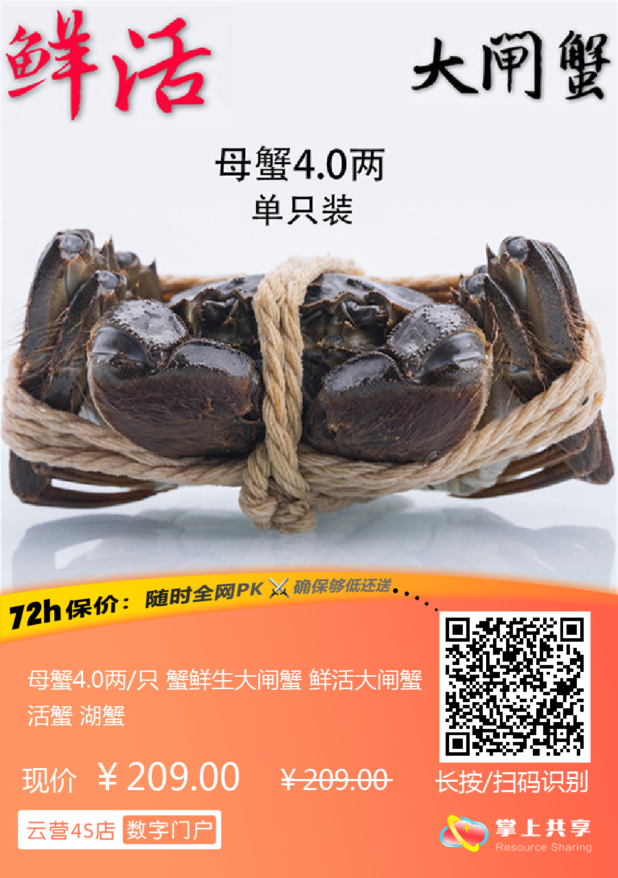 母蟹4.0两/只 蟹鲜生大闸蟹 鲜活大闸蟹 活蟹 湖蟹