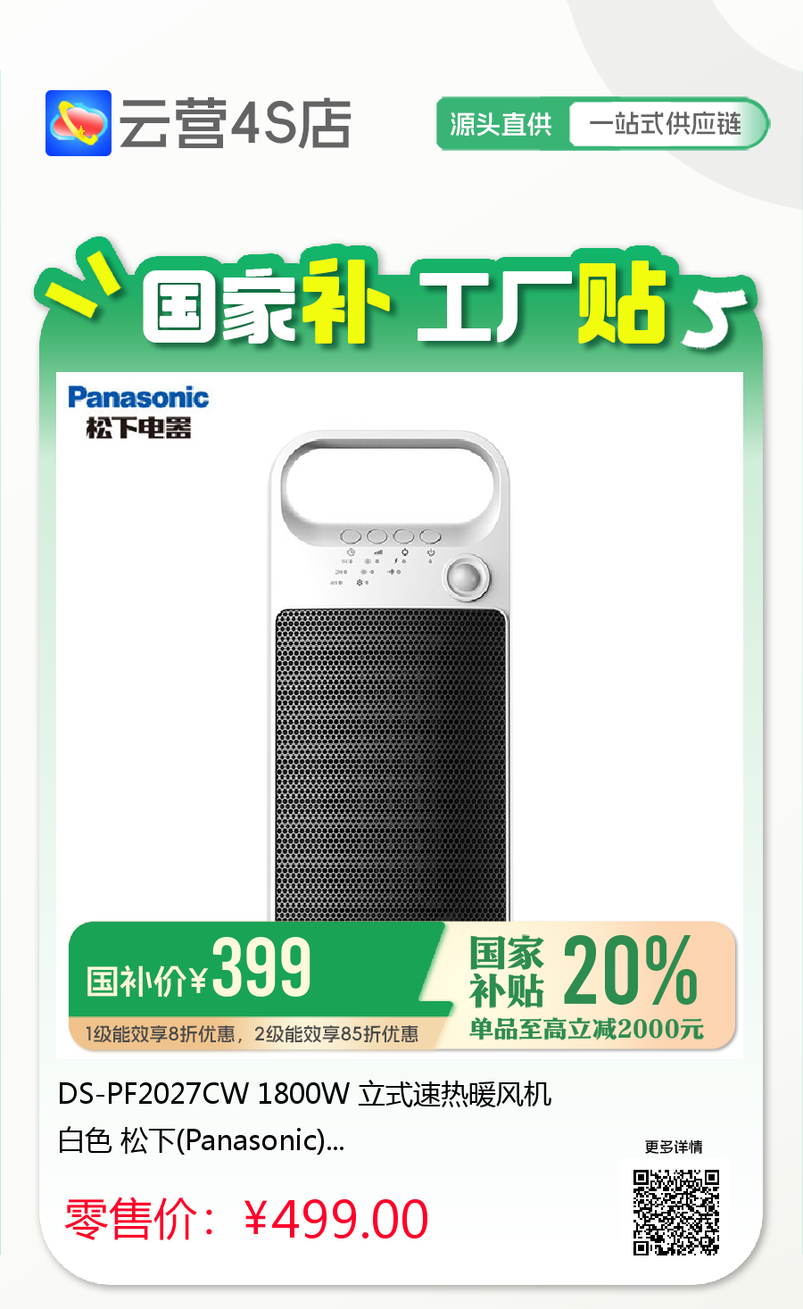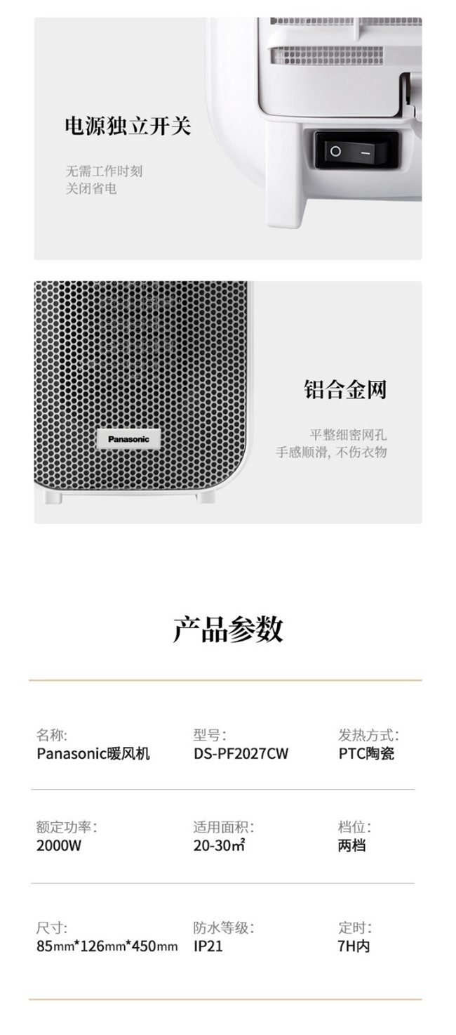 DS-PF2027CW 1800W 立式速热暖风机 白色 松下(Panasonic)