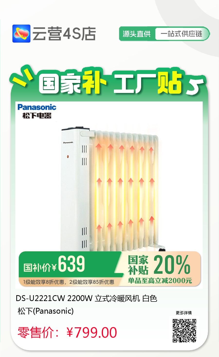 DS-U2221CW 2200W 立式冷暖风机 白色 松下(Panasonic)