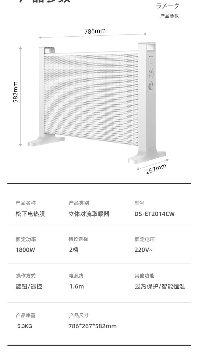 DS-ET2014CW 1800W 立式冷暖风机 白色 松下(Panasonic)