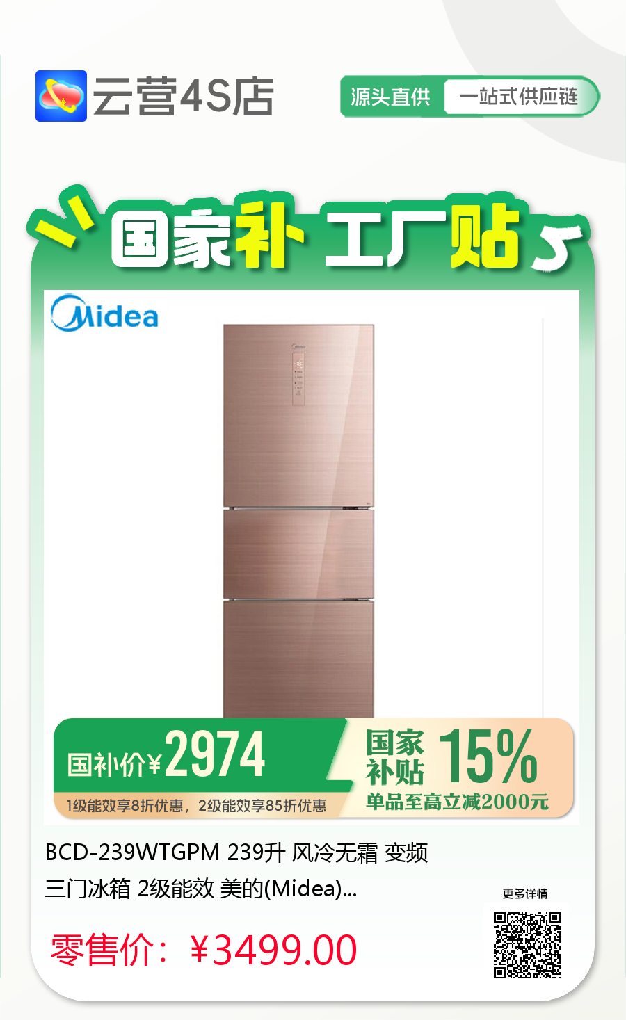 美的冰箱~「云营4S店❃无界直营」