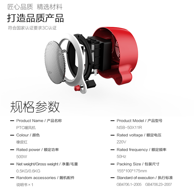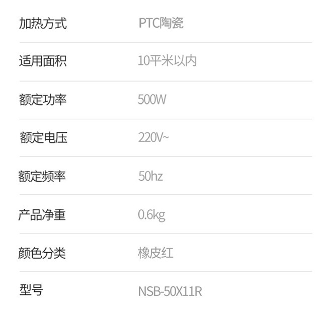 NSB-50X11R 迷你暖风机 橡皮红 双温控1.2米电源线 赛特斯(cetus)