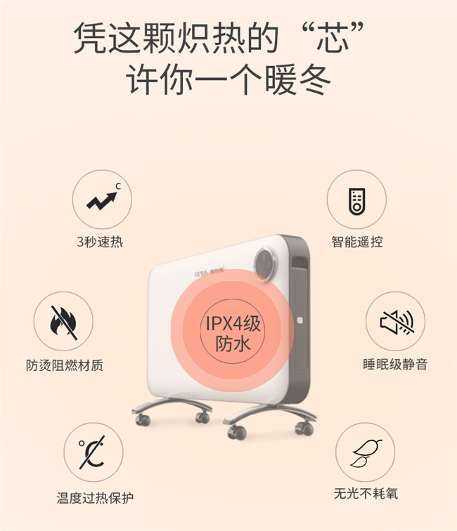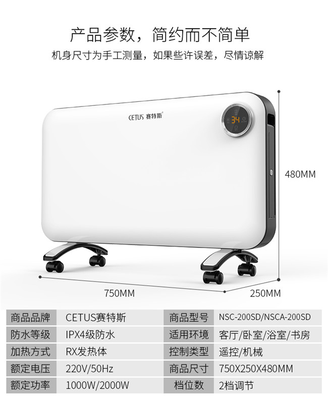 NSC-200SD 机械开关 双向定时 家用浴室对流式电暖器 IPX4级防水 赛特斯(cetus)