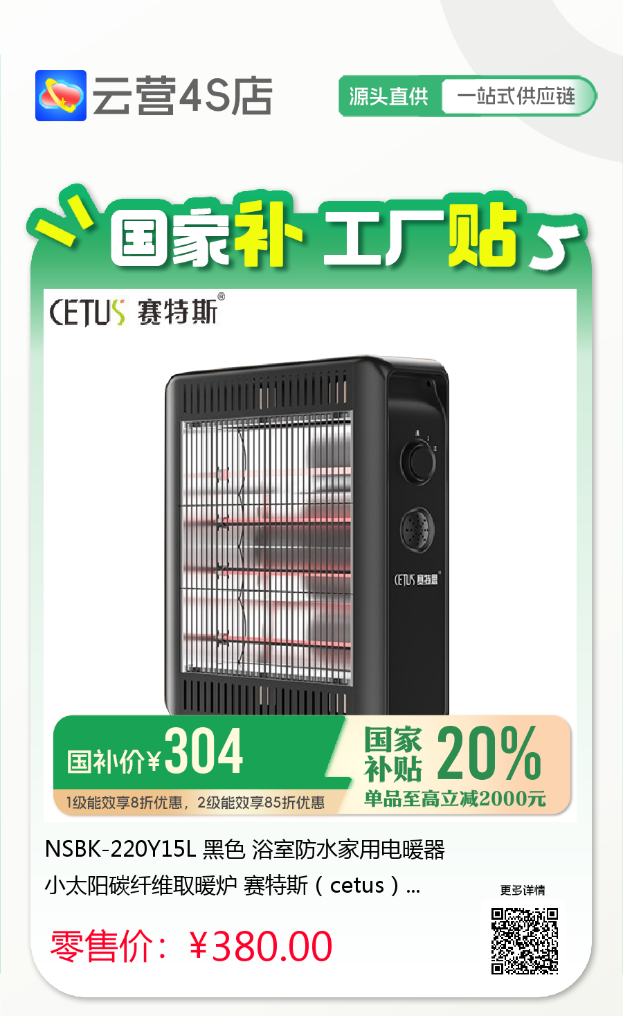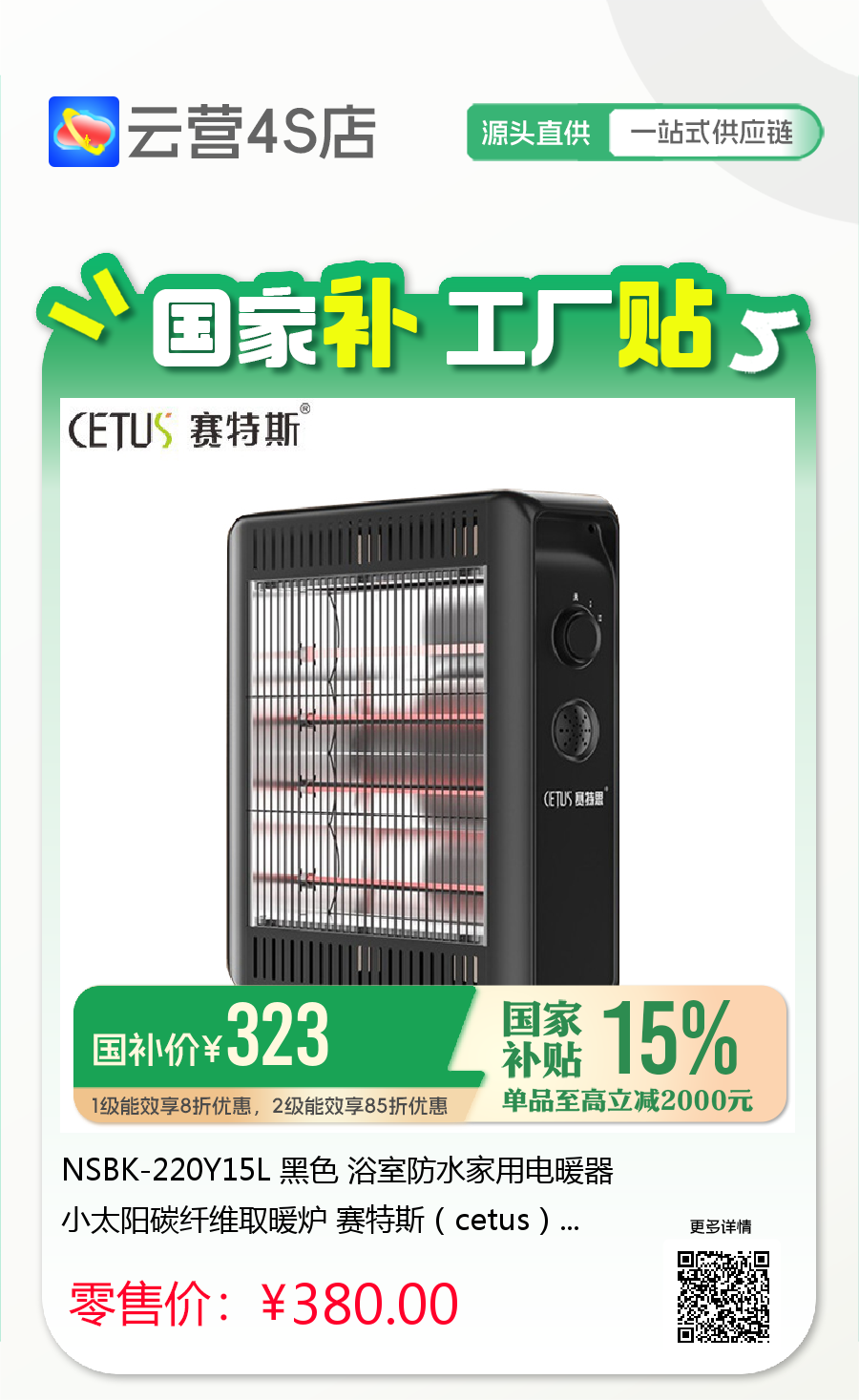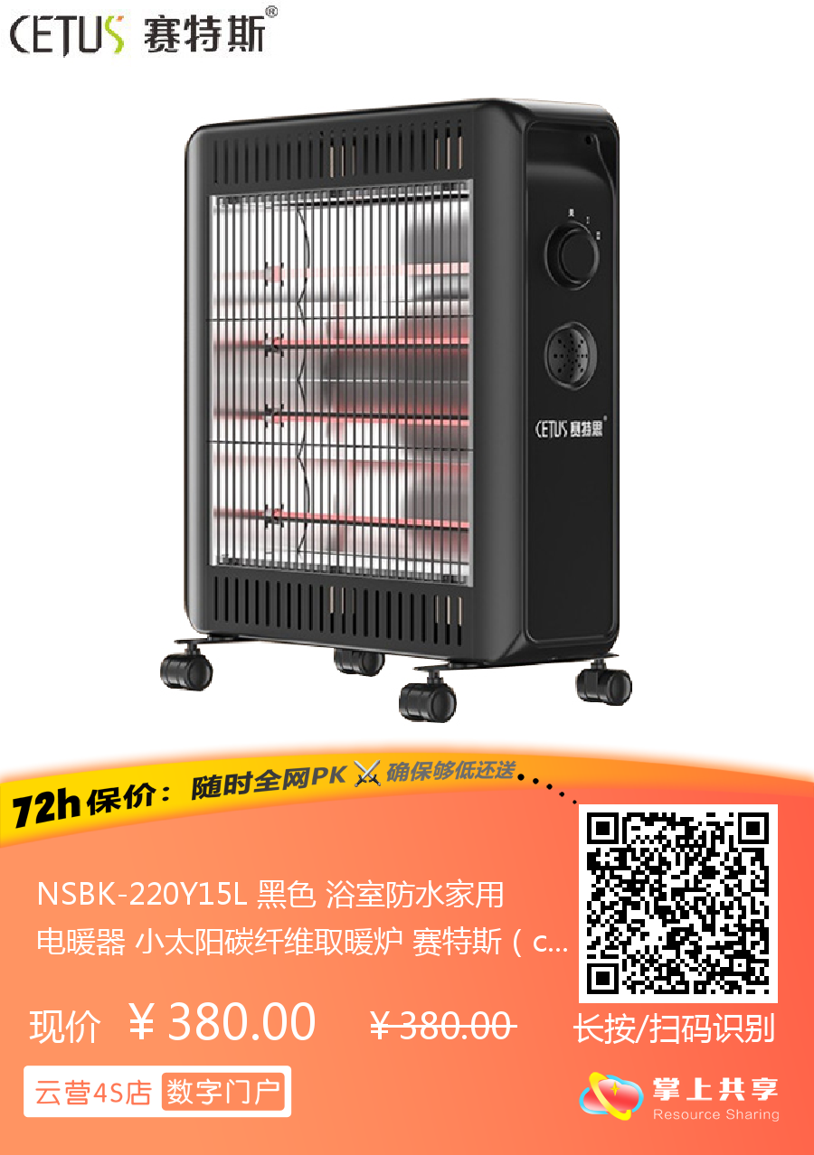 NSBK-220Y15L 黑色 浴室防水家用电暖器 小太阳碳纤维取暖炉 赛特斯(cetus)