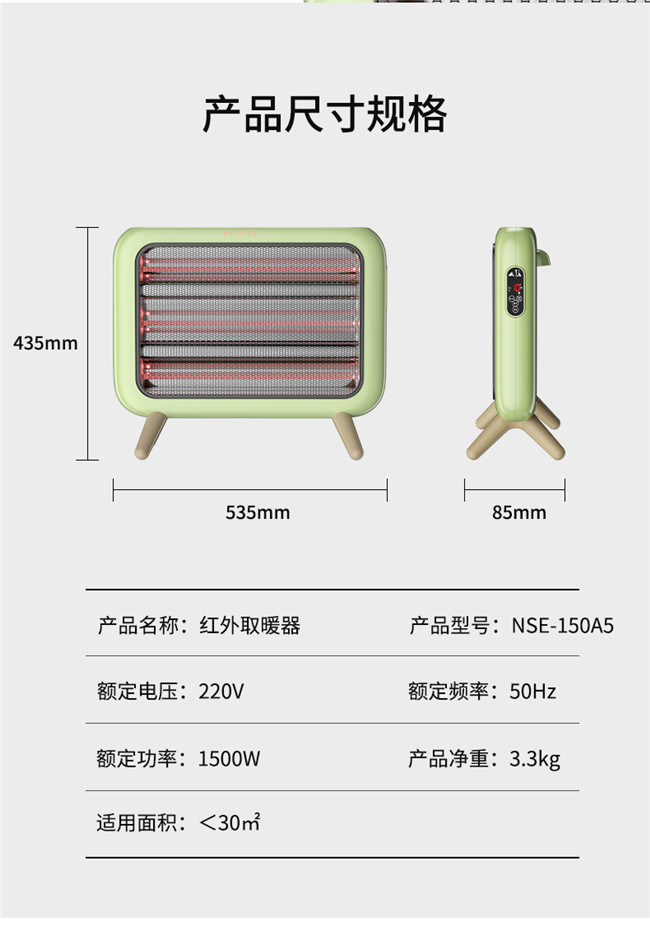 NSE-150A5 碳纤维发热 家用节能省电暖风机 浴室防水烤火炉小太阳 夏人(xiaren)