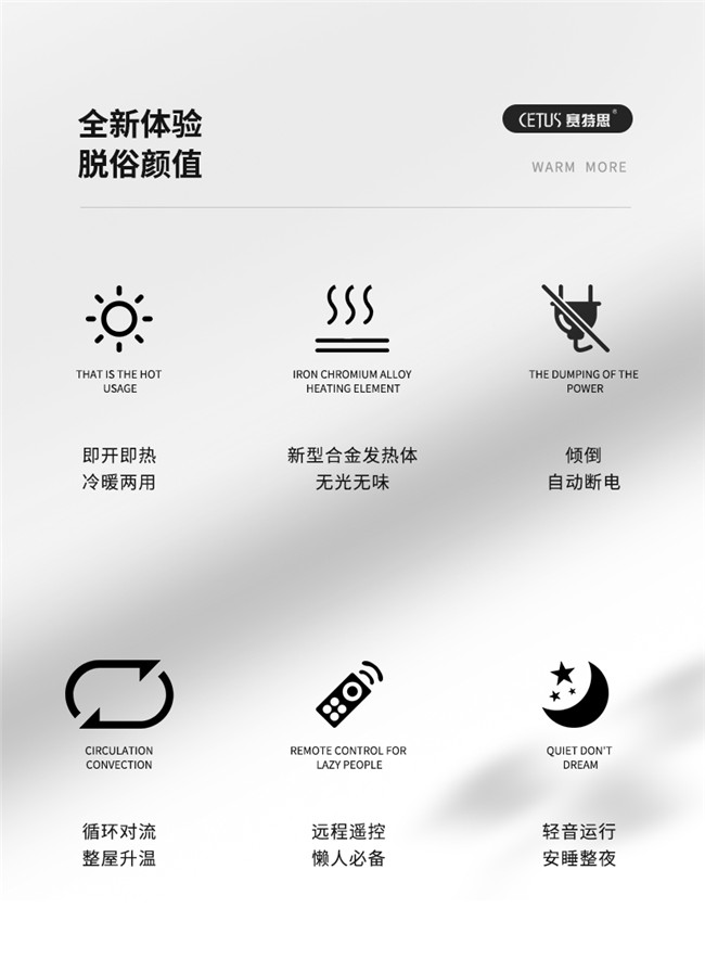 NSE-180X5 石英管发热 家用节能省电暖风机 浴室防水烤火炉小太阳 赛特斯(cetus)