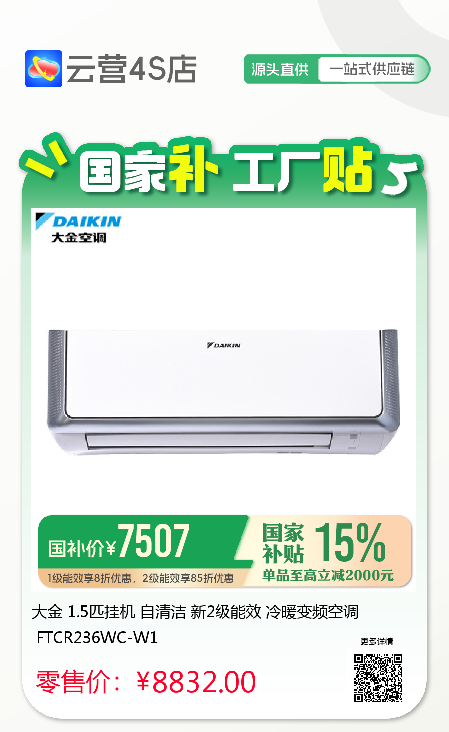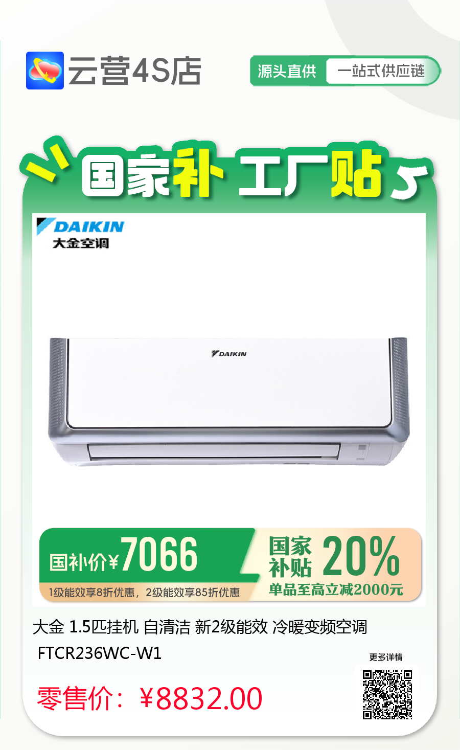 1级能效享8折优惠,2级能效享85折优惠