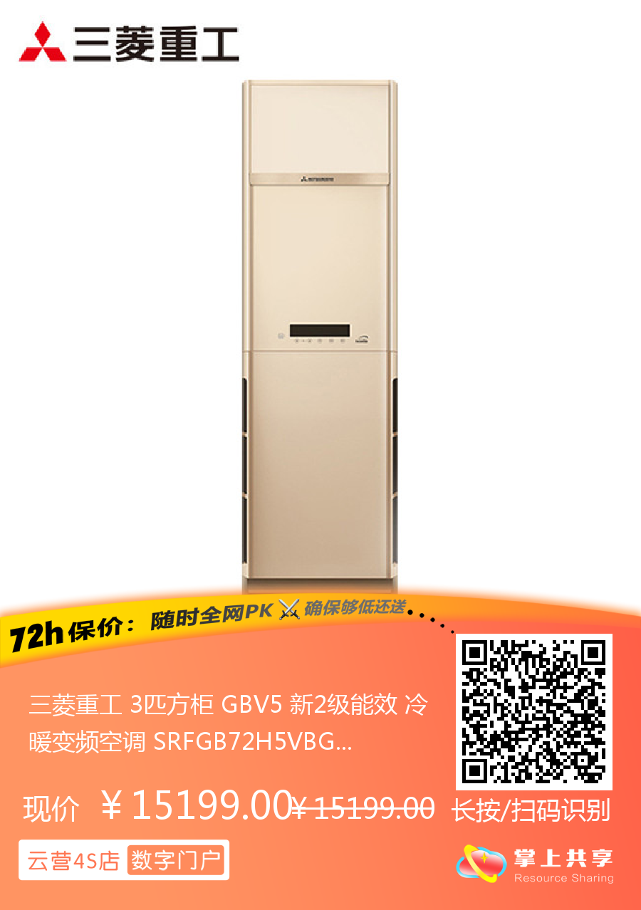 三菱重工 3匹方柜 GBV5 新2级能效 冷暖变频空调 SRFGB72H5VBG