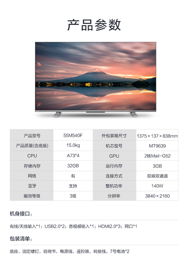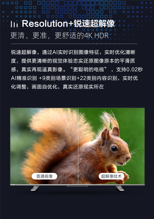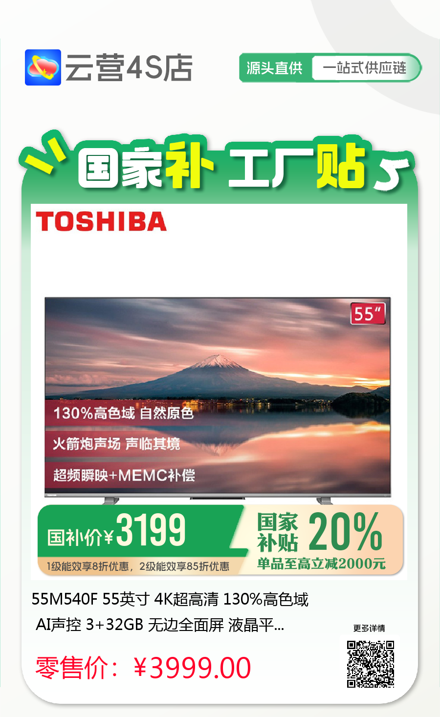55M540F 55英寸 4K超高清 130%高色域 AI声控 3+32GB 无边全面屏 液晶平板电视机 东芝(TOSHIBA)