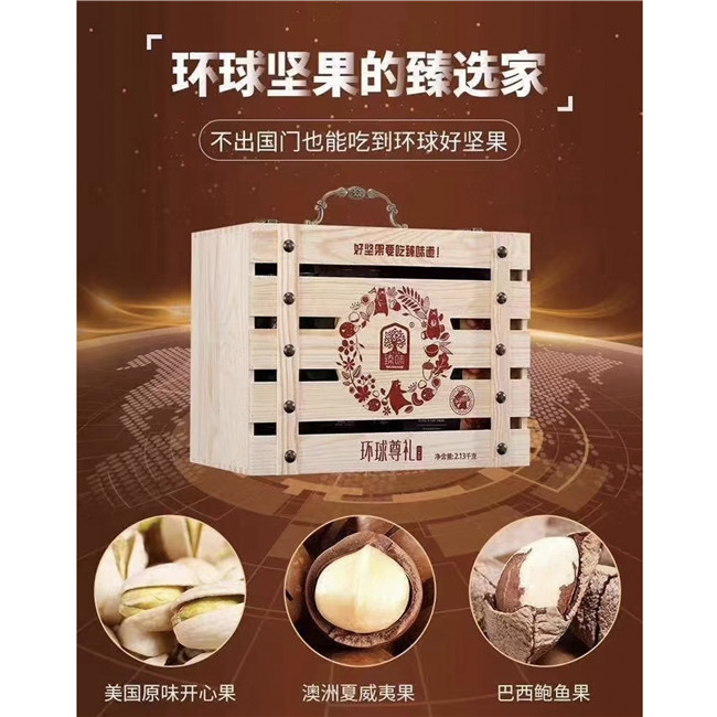 臻味坚果礼盒环球尊礼 高档木盒 混合坚果组合 春节送礼