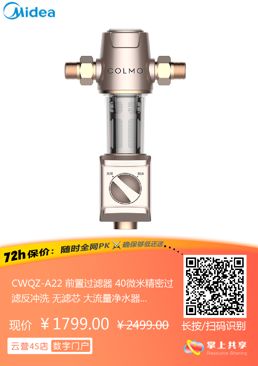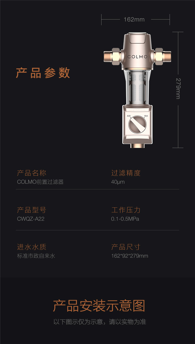 CWQZ-A22 前置过滤器 40微米精密过滤反冲洗 无滤芯 大流量净水器