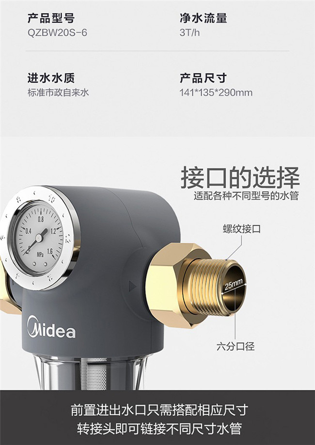 QZBW20S-6 前置过滤器 高精度过滤反冲洗 全屋净化自来水净水器