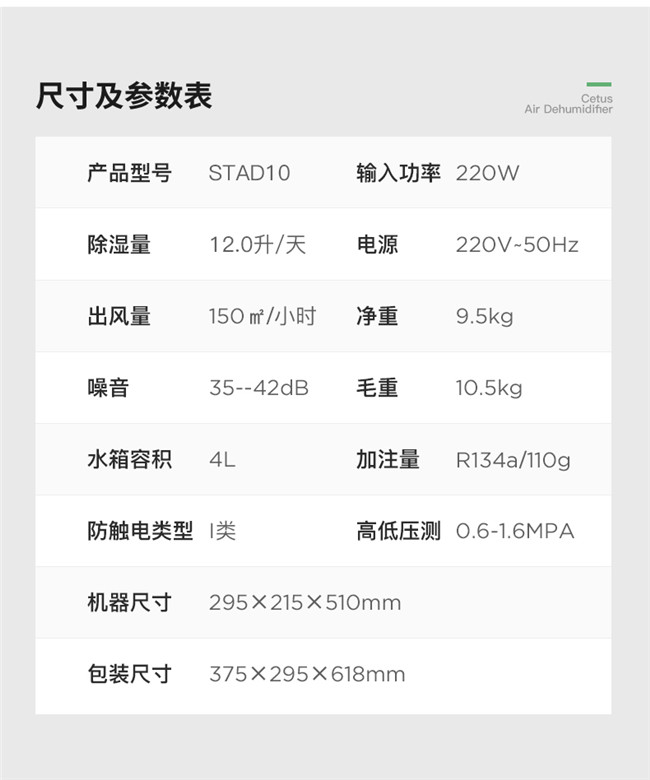 STSD10-1010V2R5 12升/天 4升储水箱 家用除湿机 触控款 赛特斯