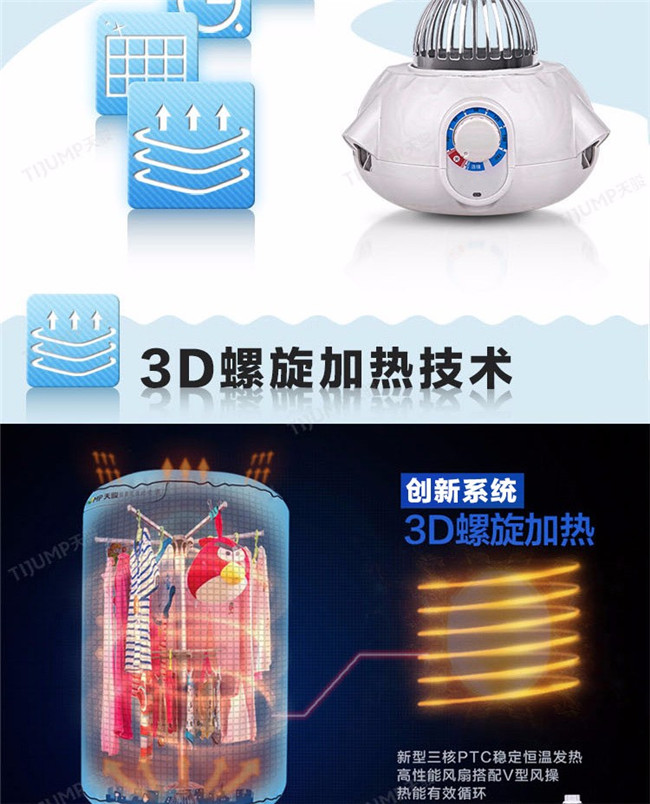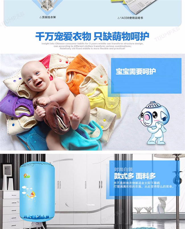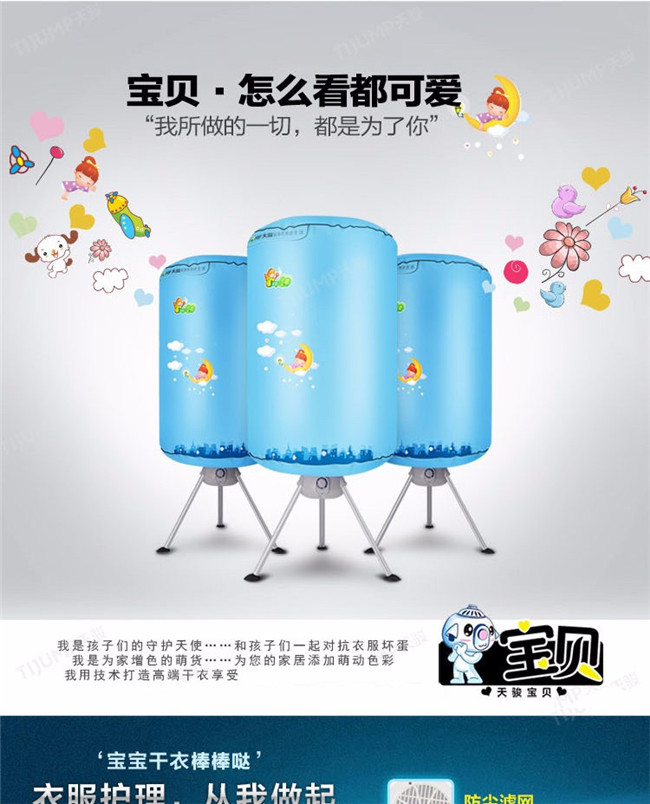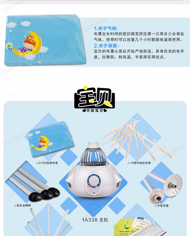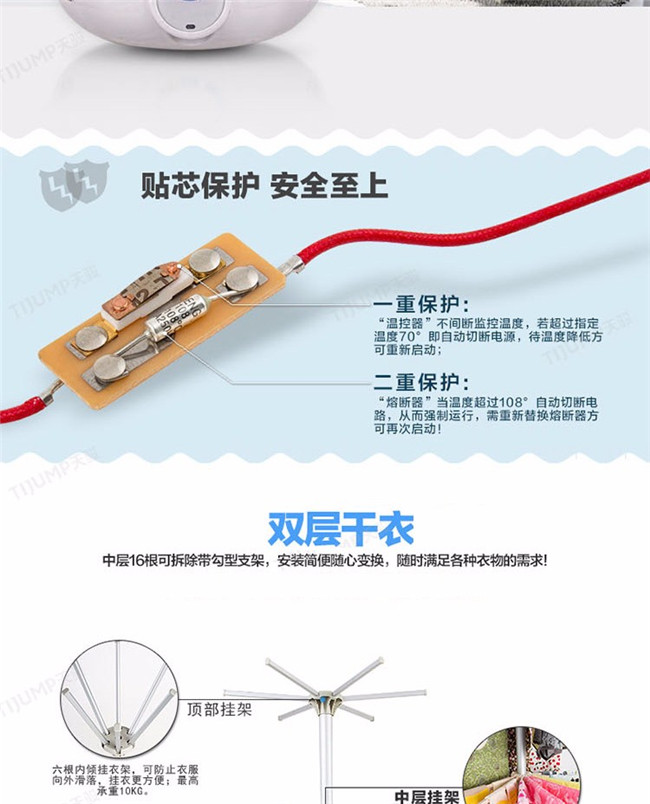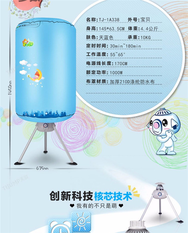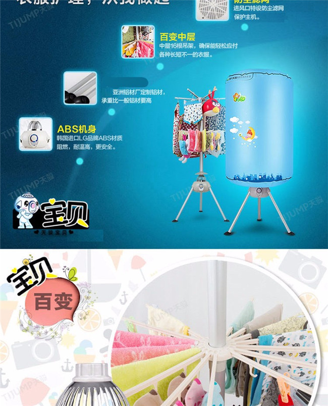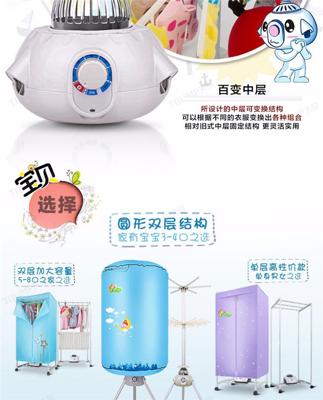 TJ-1A338 蓝色双层 家用衣服烘干机暖风机 天骏干衣机