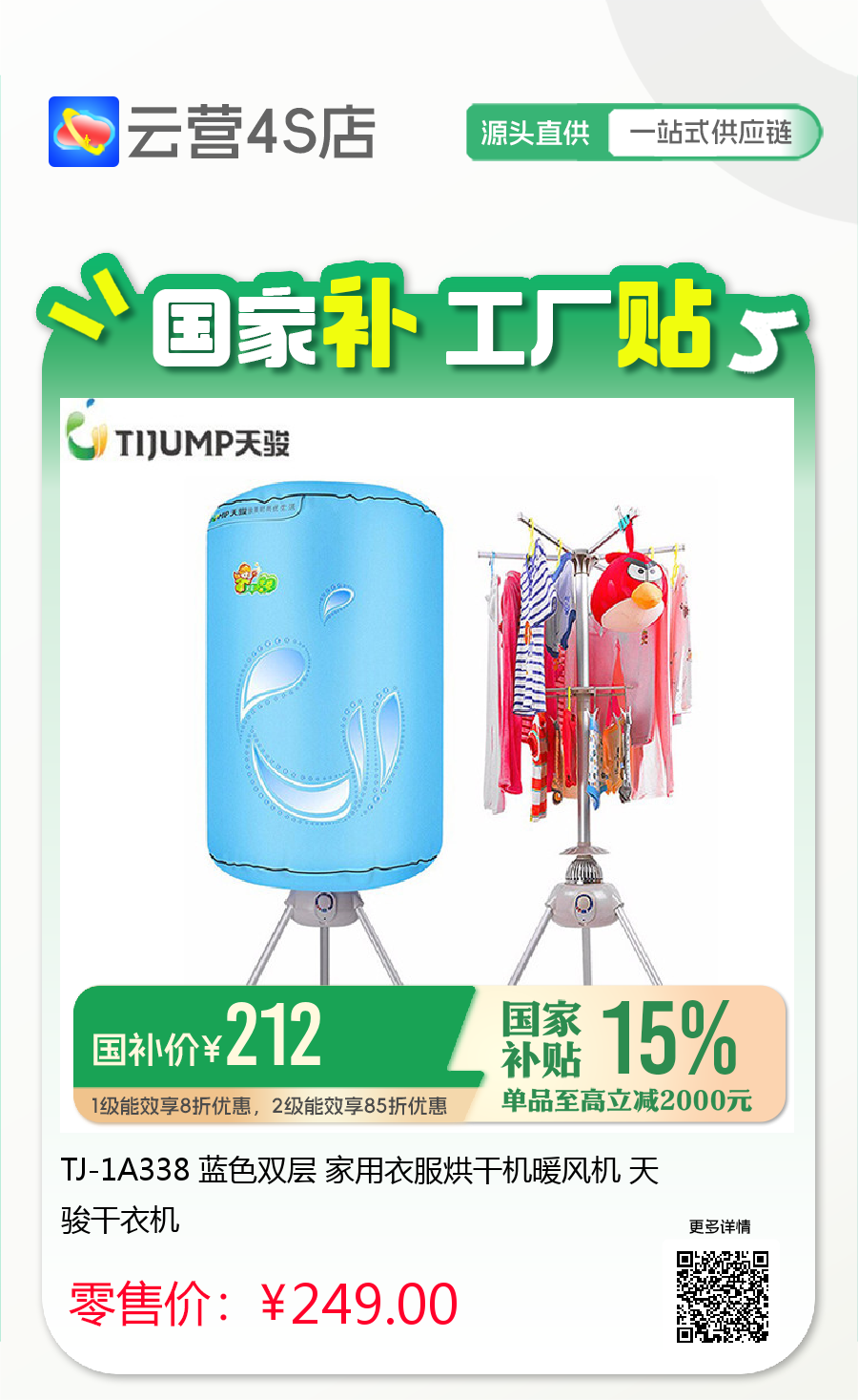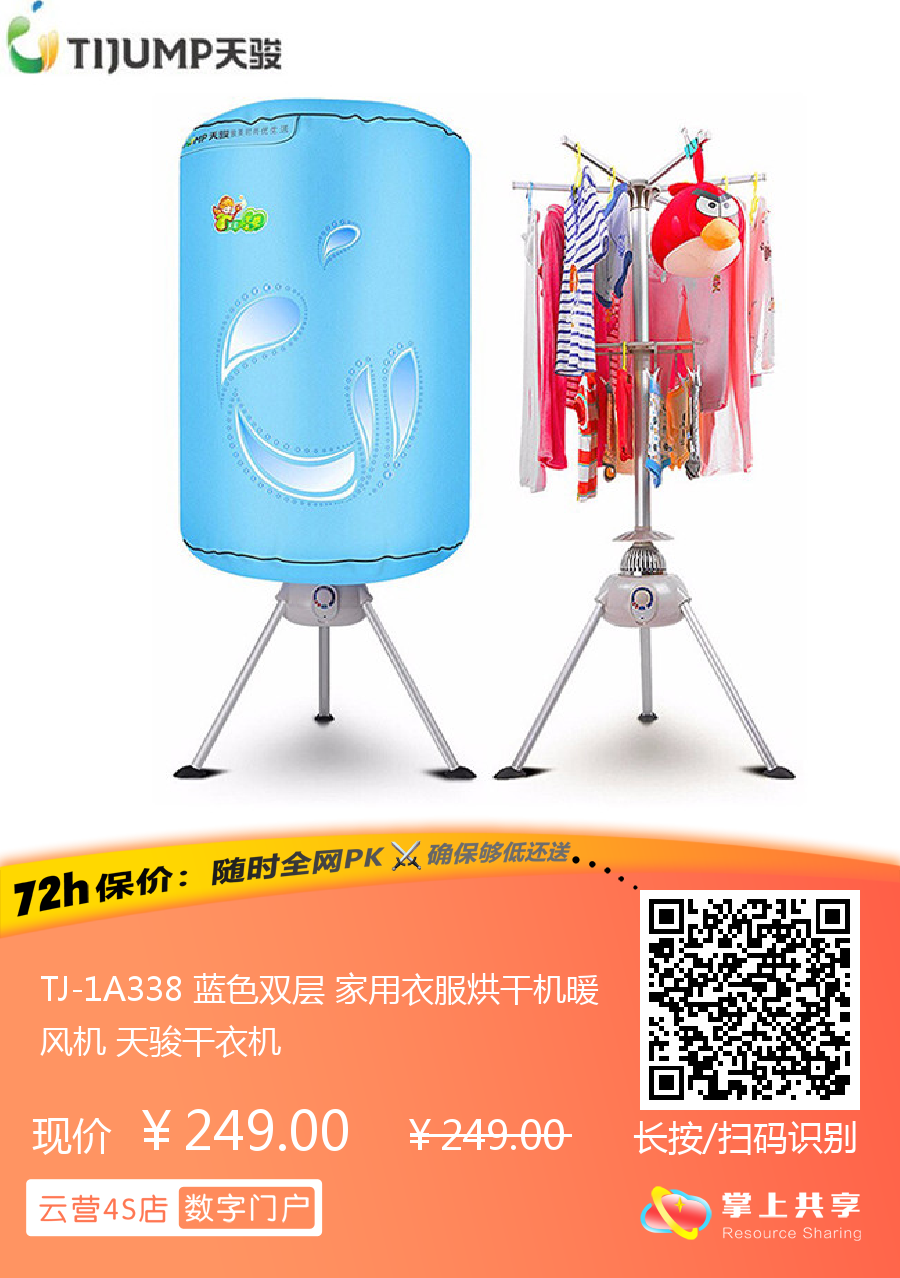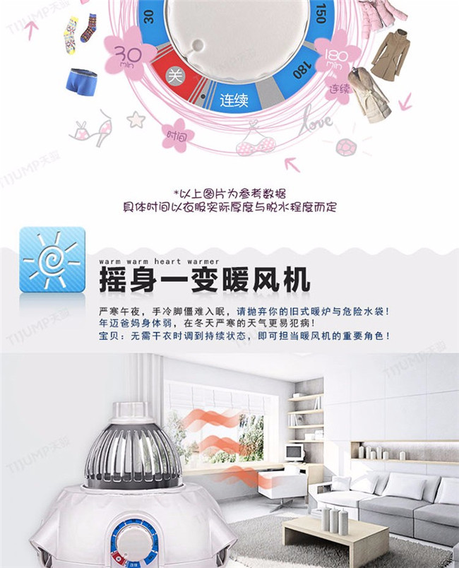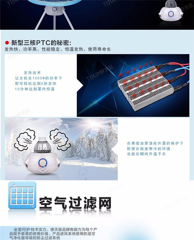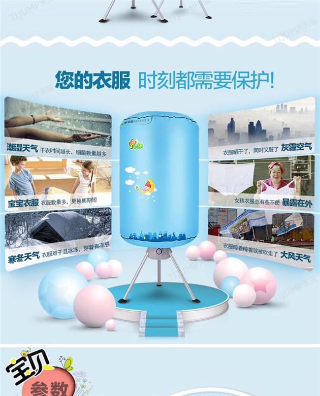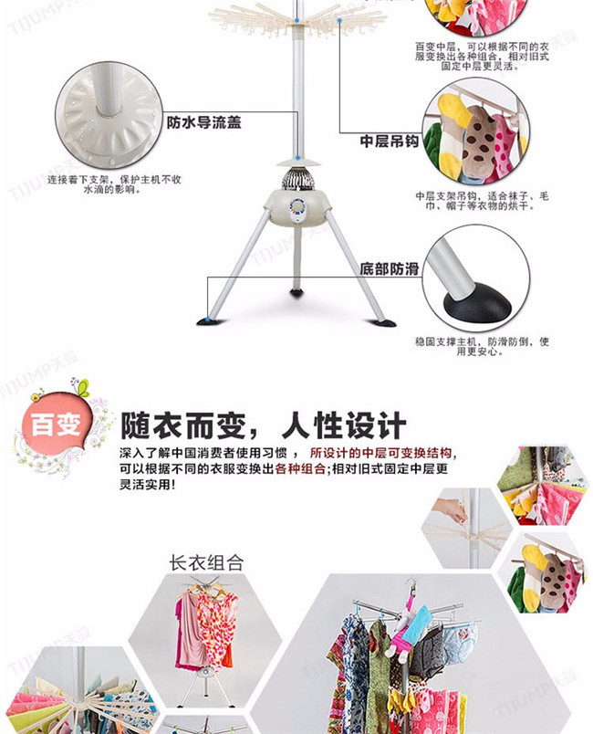 TJ-1A338 蓝色双层 家用衣服烘干机暖风机 天骏干衣机
