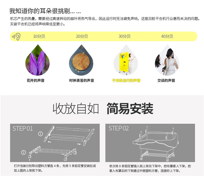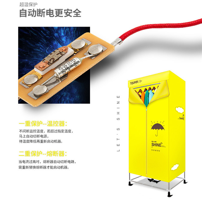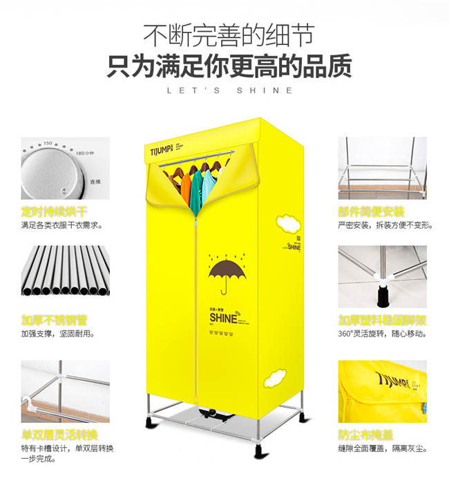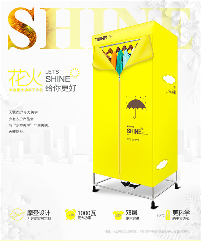 TJ-301M 黄色双层单铁管 家用衣服烘干机暖风机 天骏干衣机