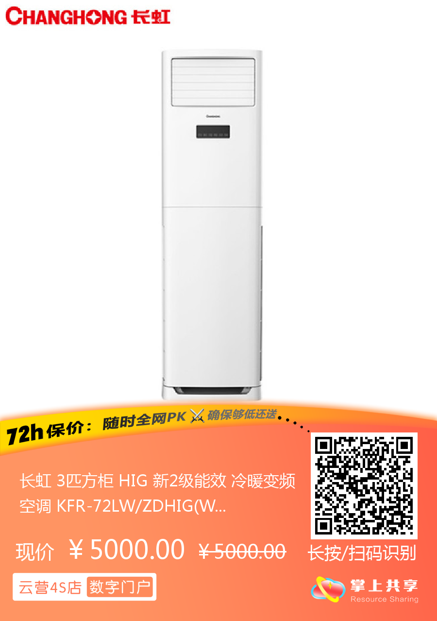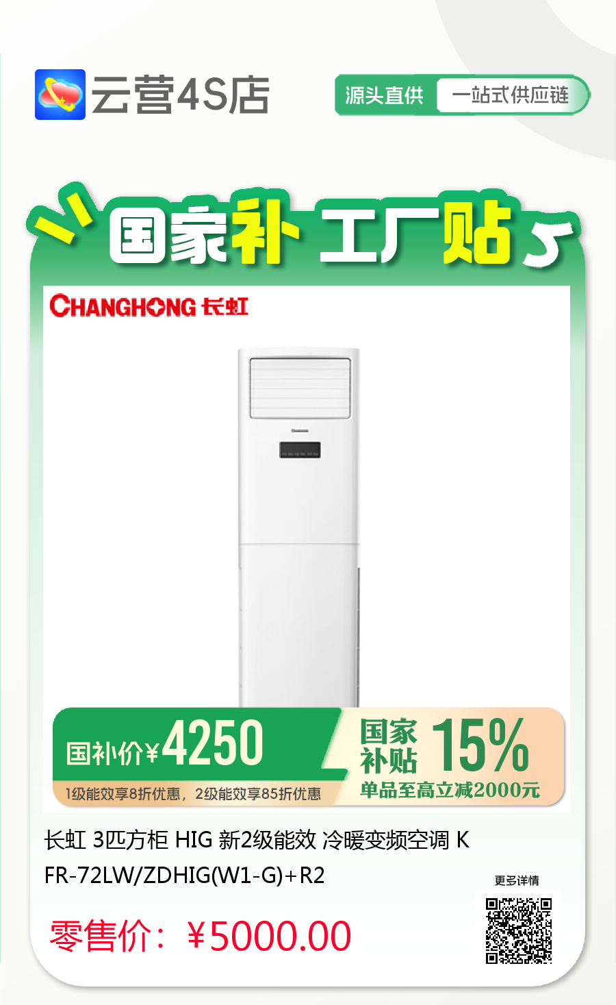 长虹 3匹方柜 HIG 新2级能效 冷暖变频空调 KFR-72LW/ZDHIG(W1-G)+R2