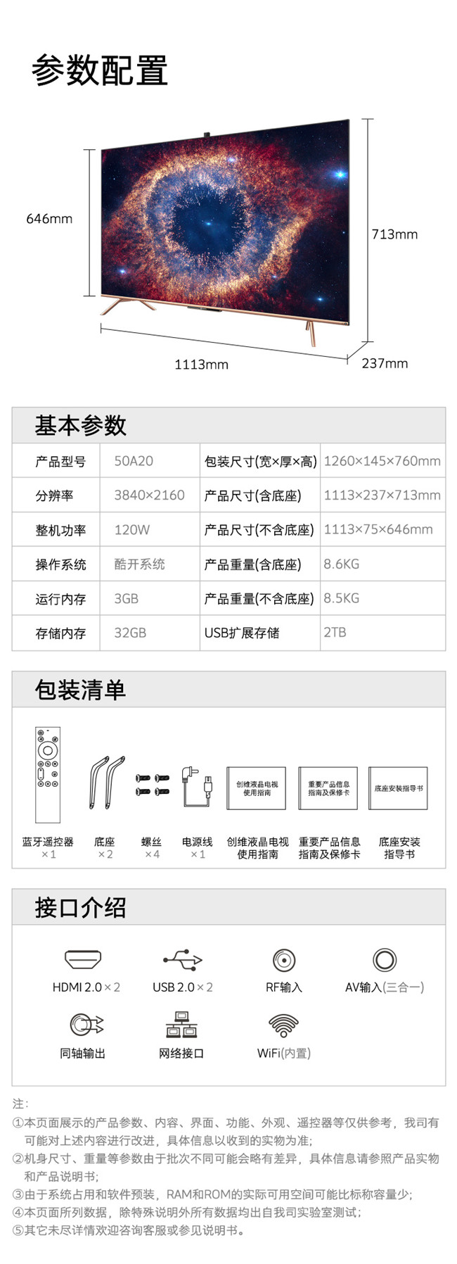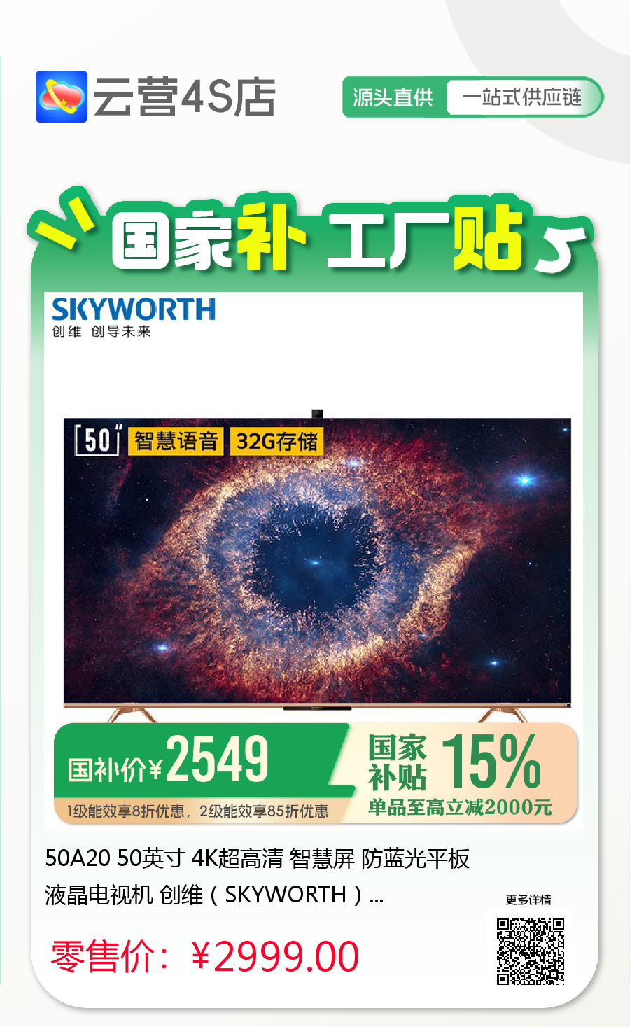 50A20 50英寸 4K超高清 智慧屏 防蓝光平板液晶电视机 创维(SKYWORTH)