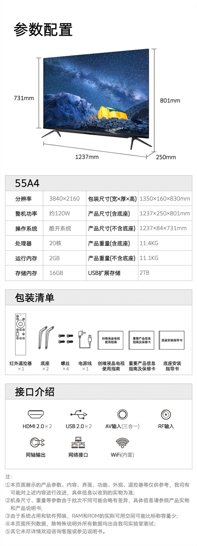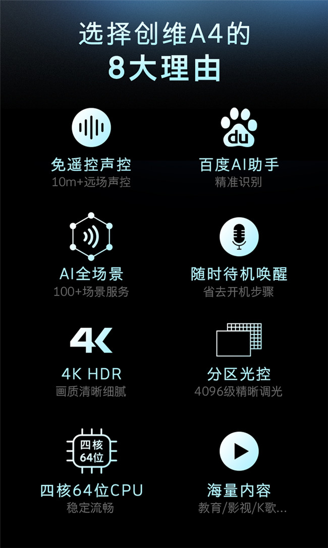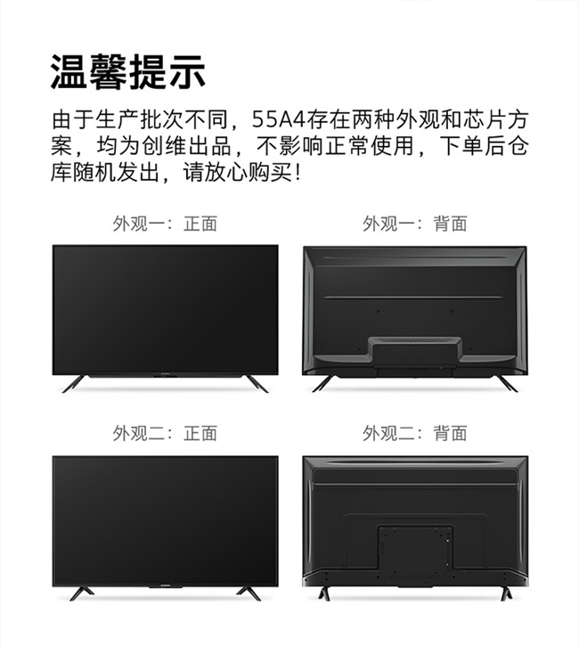 55A4 55英寸 4K超高清 智慧屏 窄边全面屏 教育电视 创维(SKYWORTH)