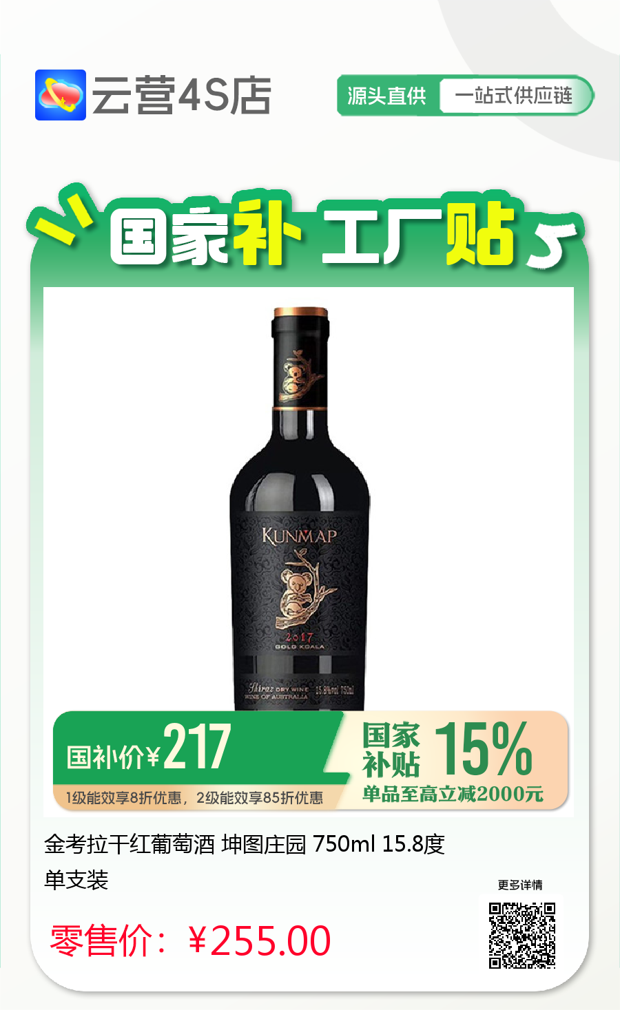 金考拉干红葡萄酒 坤图庄园 750ml 15.8度 单支装