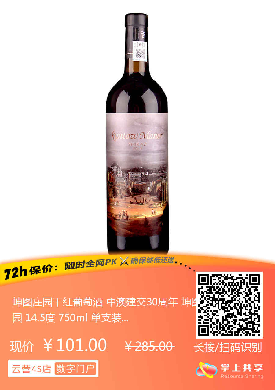 坤图庄园干红葡萄酒 中澳建交30周年 坤图庄园 14.5度 750ml 单支装