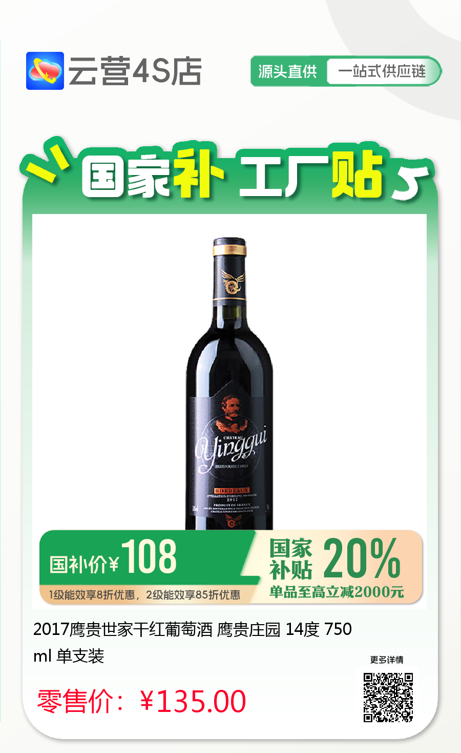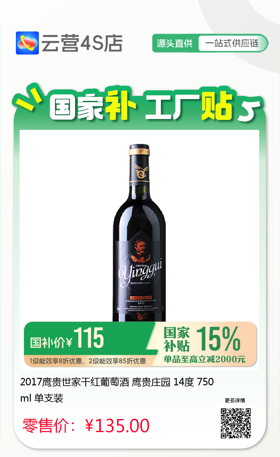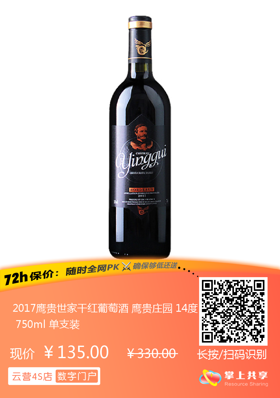 2017鹰贵世家干红葡萄酒 鹰贵庄园 14度 750ml 单支装