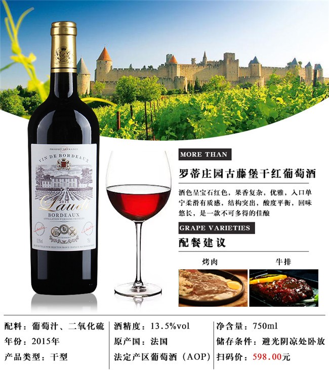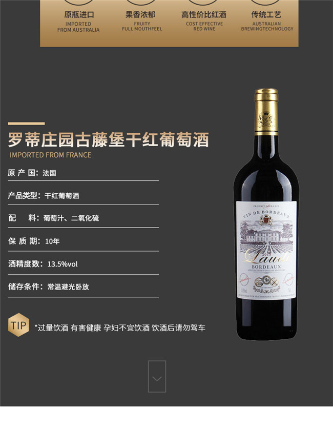 古腾堡干红葡萄酒 罗蒂庄园 13.5度 750ml 单支装