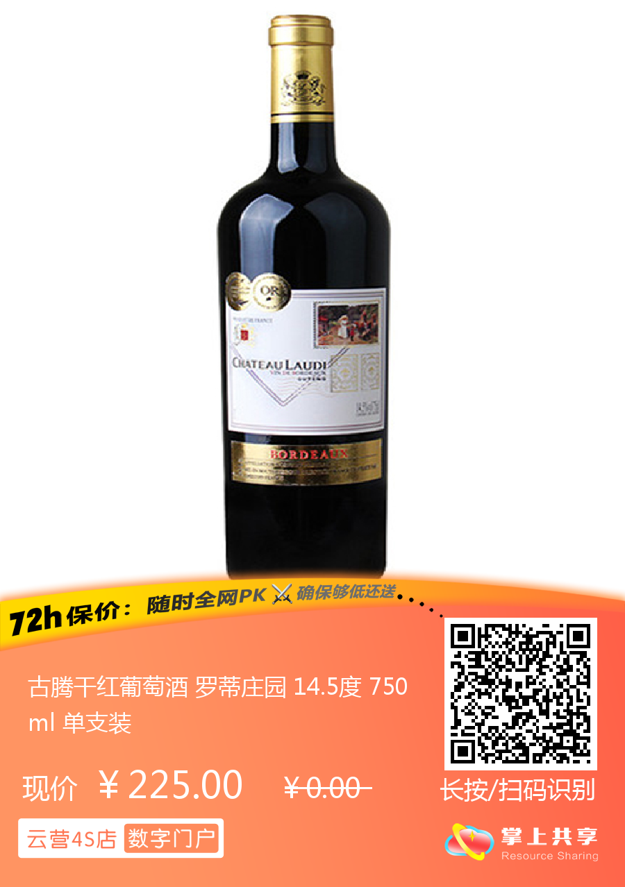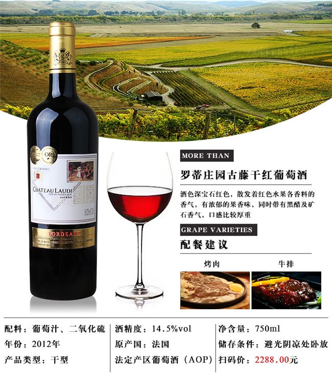 古腾干红葡萄酒 罗蒂庄园 14.5度 750ml 单支装