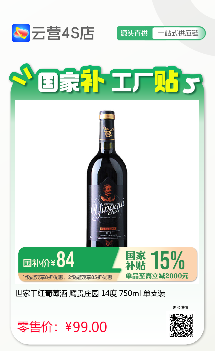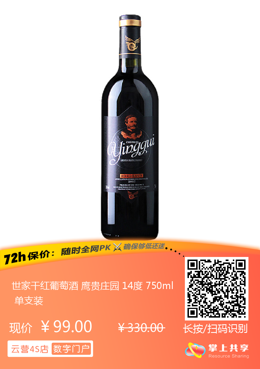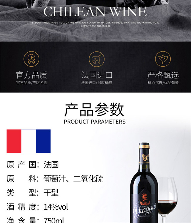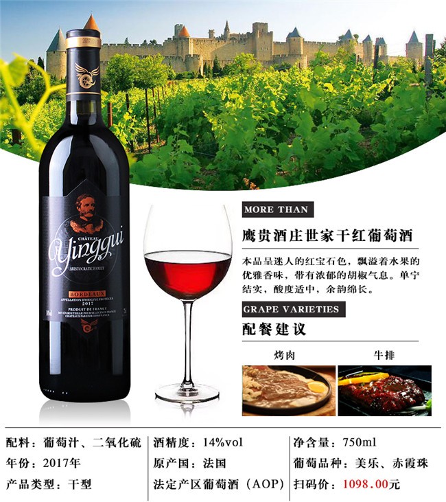 世家干红葡萄酒 鹰贵庄园 14度 750ml 单支装