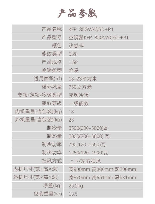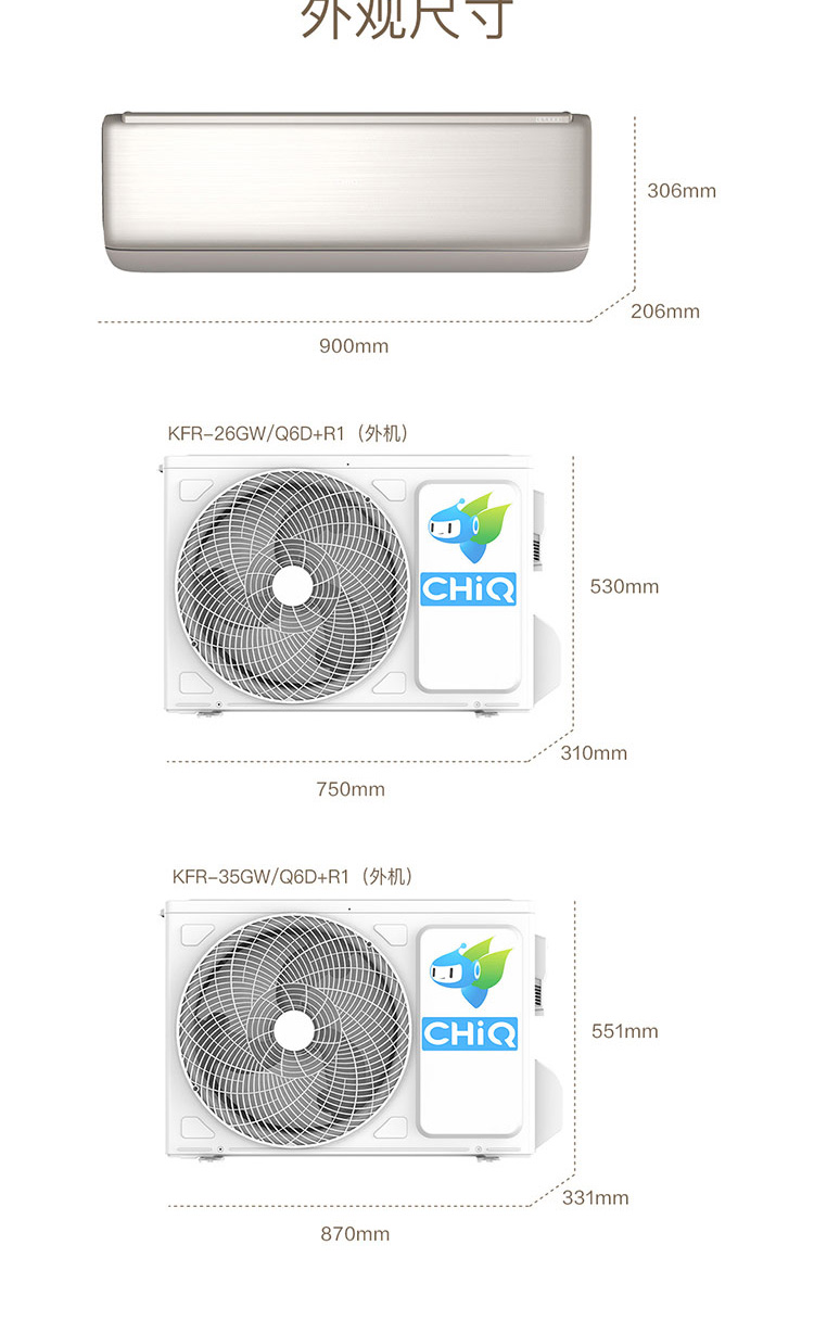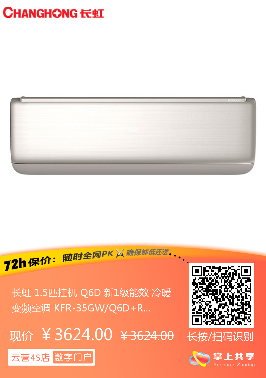 长虹 1.5匹挂机 Q6D 新1级能效 冷暖变频空调 KFR-35GW/Q6D+R1