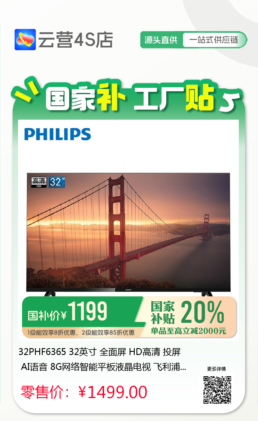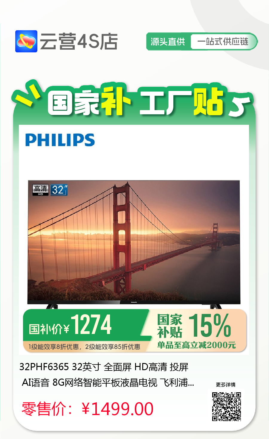 飞利浦电视~「云营4S店❃无界直营」